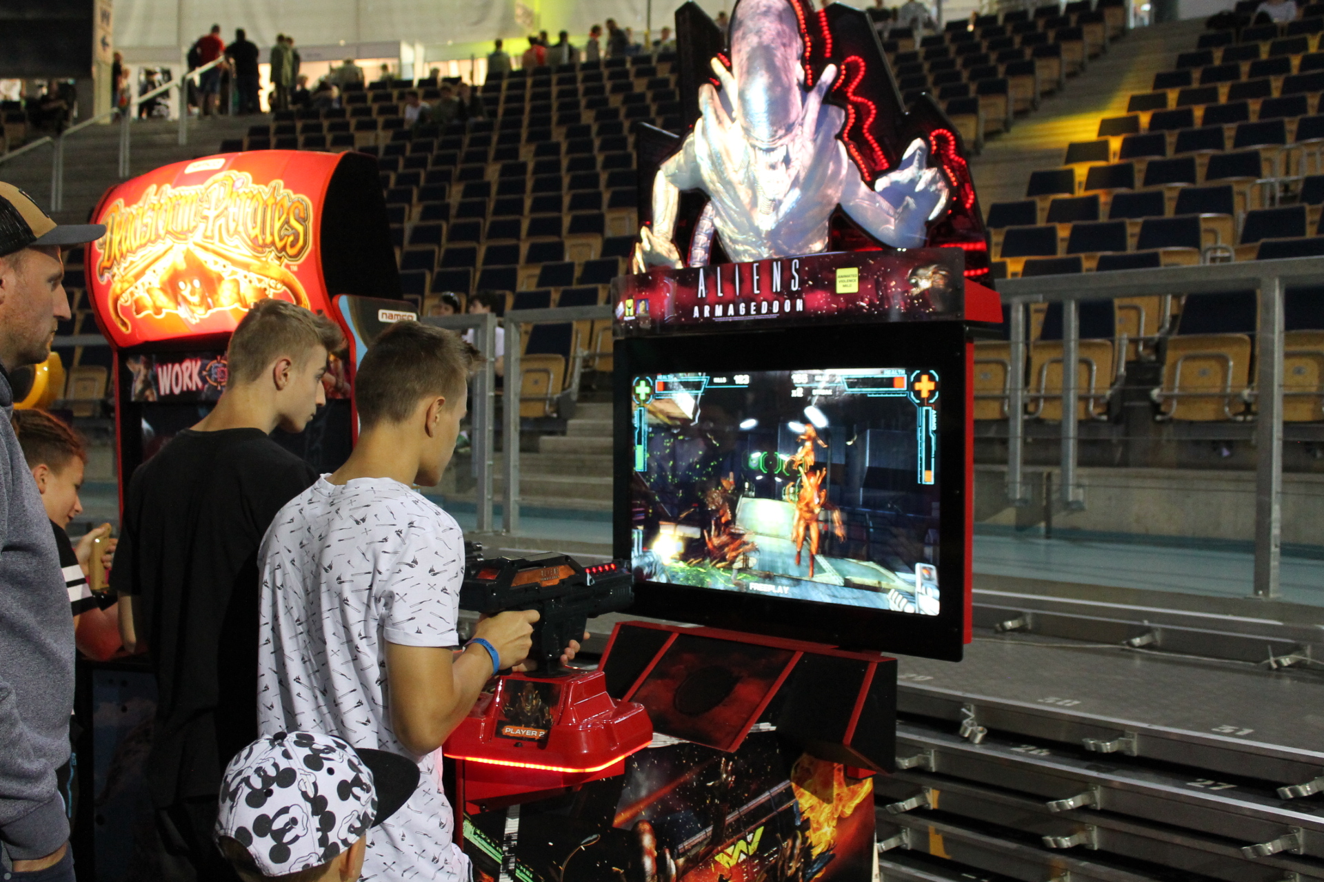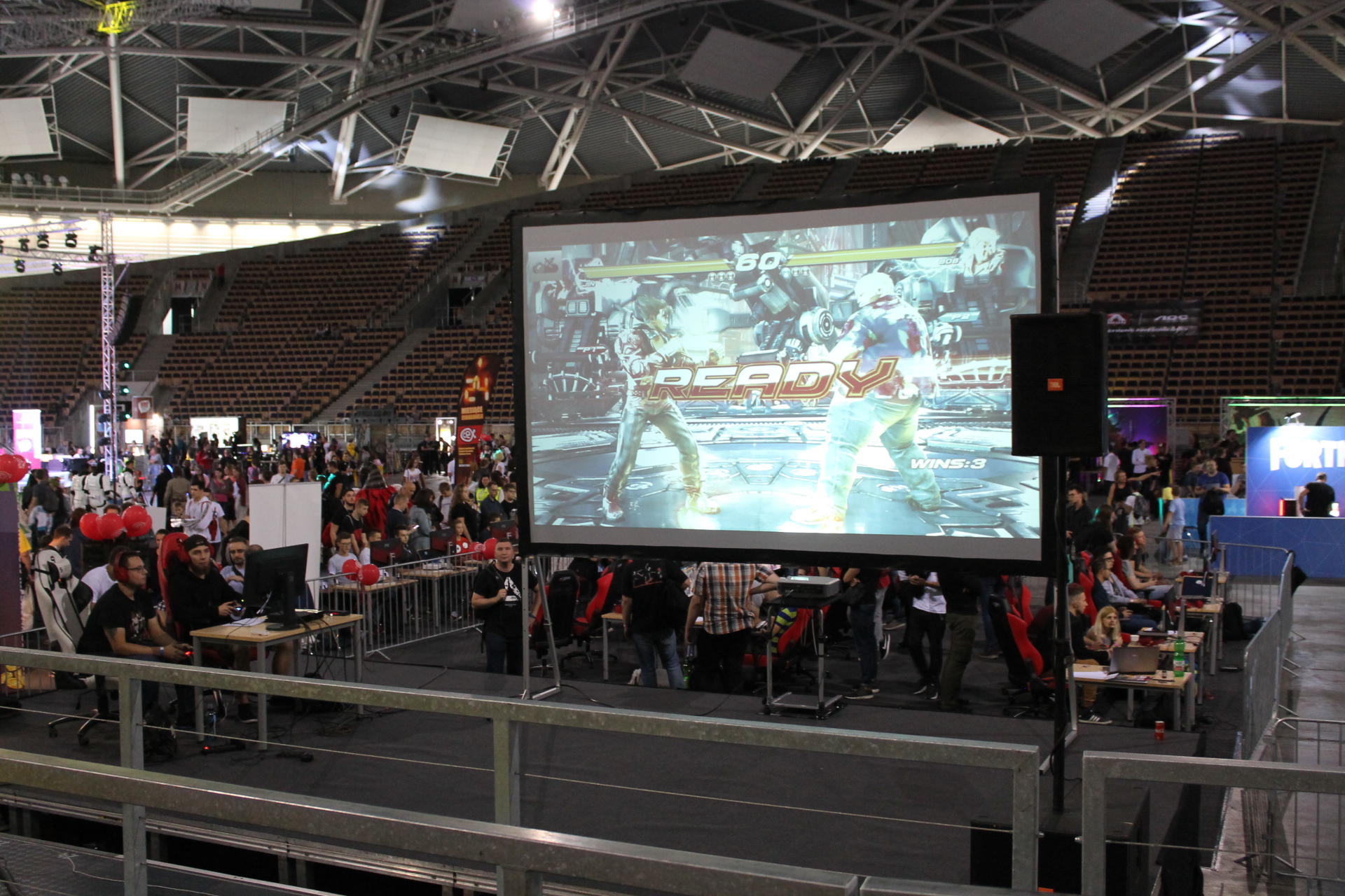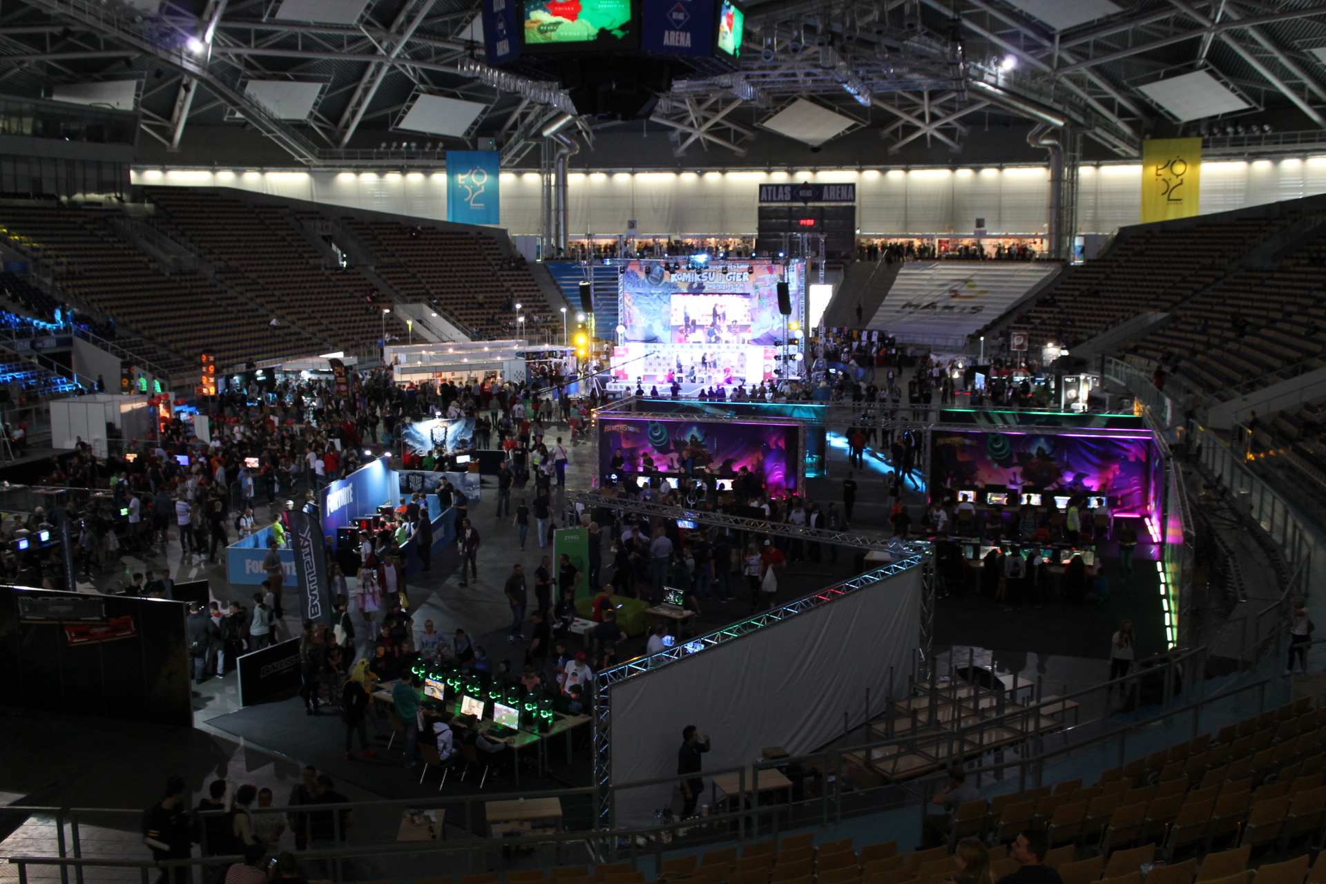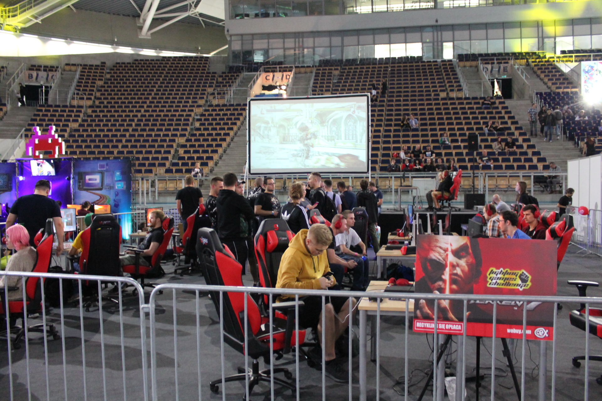 Fani elektronicznej rozgrywki jednak nie mieli powodów by popaść w kompleksy jeśli chodzi o reklamowanie ich pasji. Tutaj z pomocą przybyła płyta główna Areny, na której można było oddać się wirtualnej rozrywce. Zaczynając od wydzielonej strefy przeznaczonej na Fighting Games Challange, aż po stanowiska z takimi tytułami jak Fortnite czy Gwint. Na plus warto odnotować fakt, że nie zabrakło też stanowisk z wirtualnej rzeczywistości. Tutaj wyróżniały się dwa pełne stanowiska, dzięki którym mogliśmy zanurzyć się w mitycznym VR, a obok nich można było odnaleźć PlayStation VR lub inne gogle pozwalające odczuwać pełną immersję. Ogromny zaskoczeniem były dla mnie natomiast trzy automaty do gier.