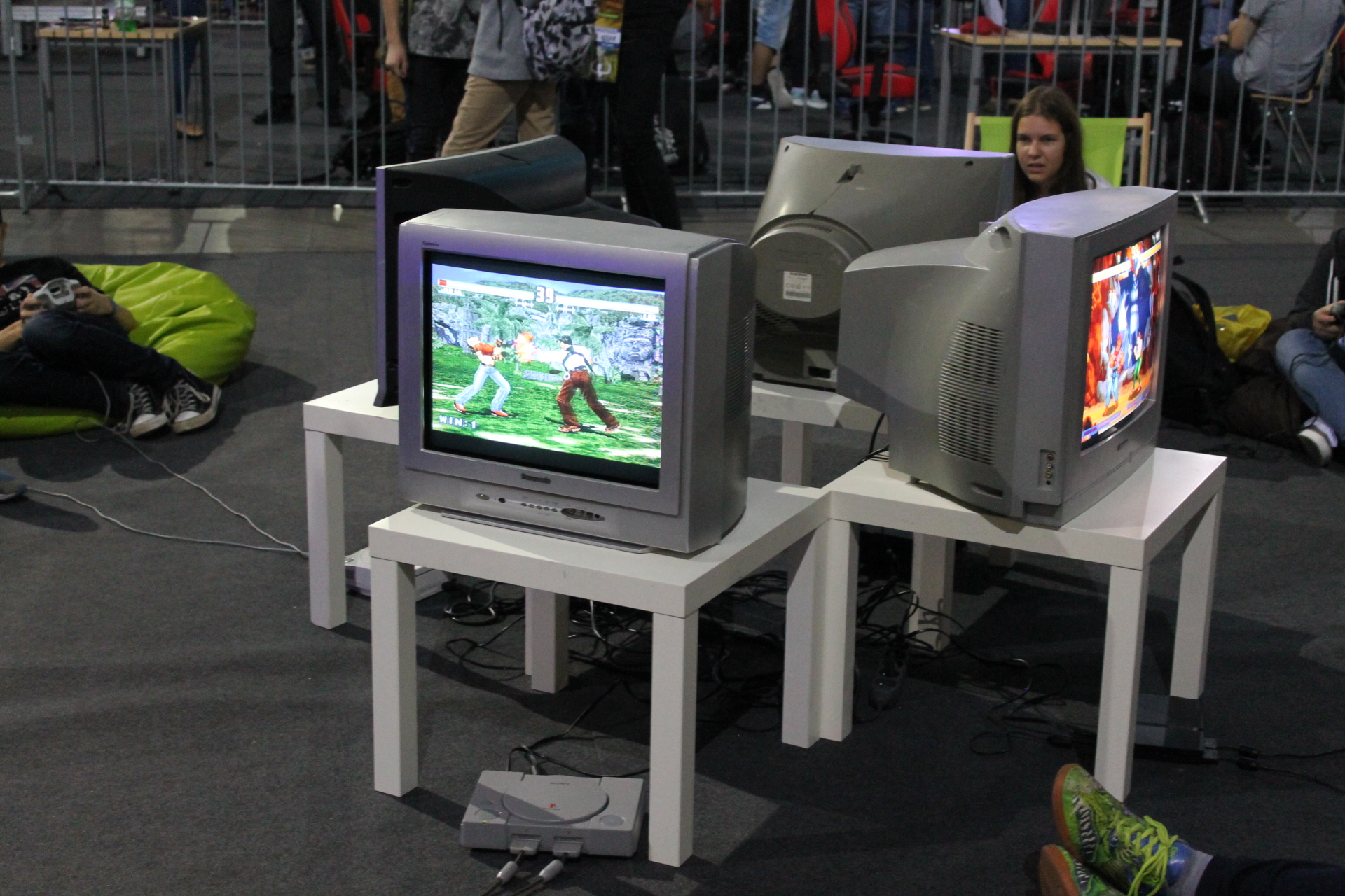 Tak, w otoczeniu nowoczesnych maszyn do grania, znalazło się miejsce dla tych kultowych staruszków. Jako osoba, która sporą część growej historii związała z automatami, widok kolejek, żeby postrzelać do obcych był uczuciem trudnym do opisania. Gdyby jednak tego było mało, do dyspozycji odwiedzających została oddana też strefa retro. Na niej mogliśmy dorwać się do takich klasyków ja Nintendo Entertainment System czy poczciwy szarak (pierwsze PlayStation). Ciekawym pomysłem było ustawienie czterech telewizorów na wzór klasycznego krzyżaka na padzie, i do każdego z nich podłączenie innej konsoli. I tak obok siebie mogliśmy zobaczyć: pierwsze PlayStation, PlayStation 2, starusienkiego Xboxa czy kultowego Dreamcasta (znanego też jako makaron).