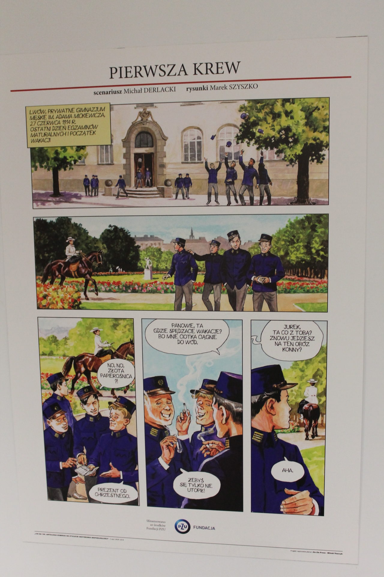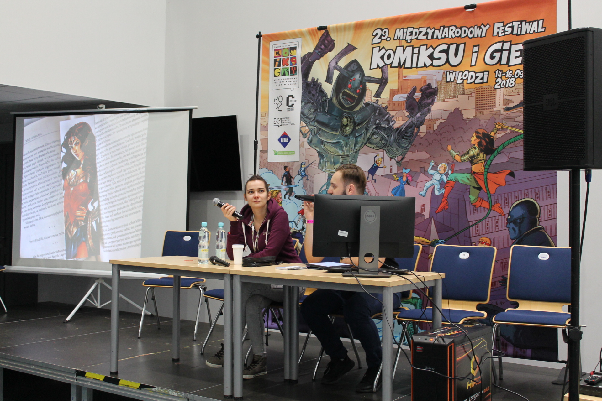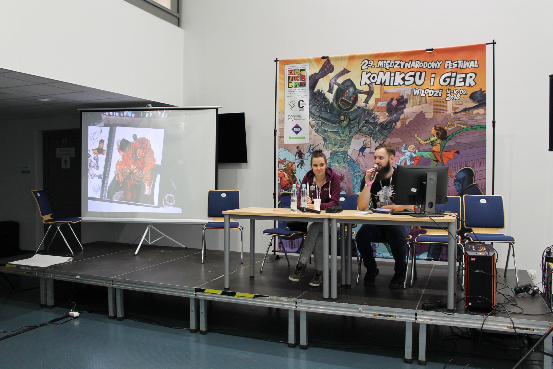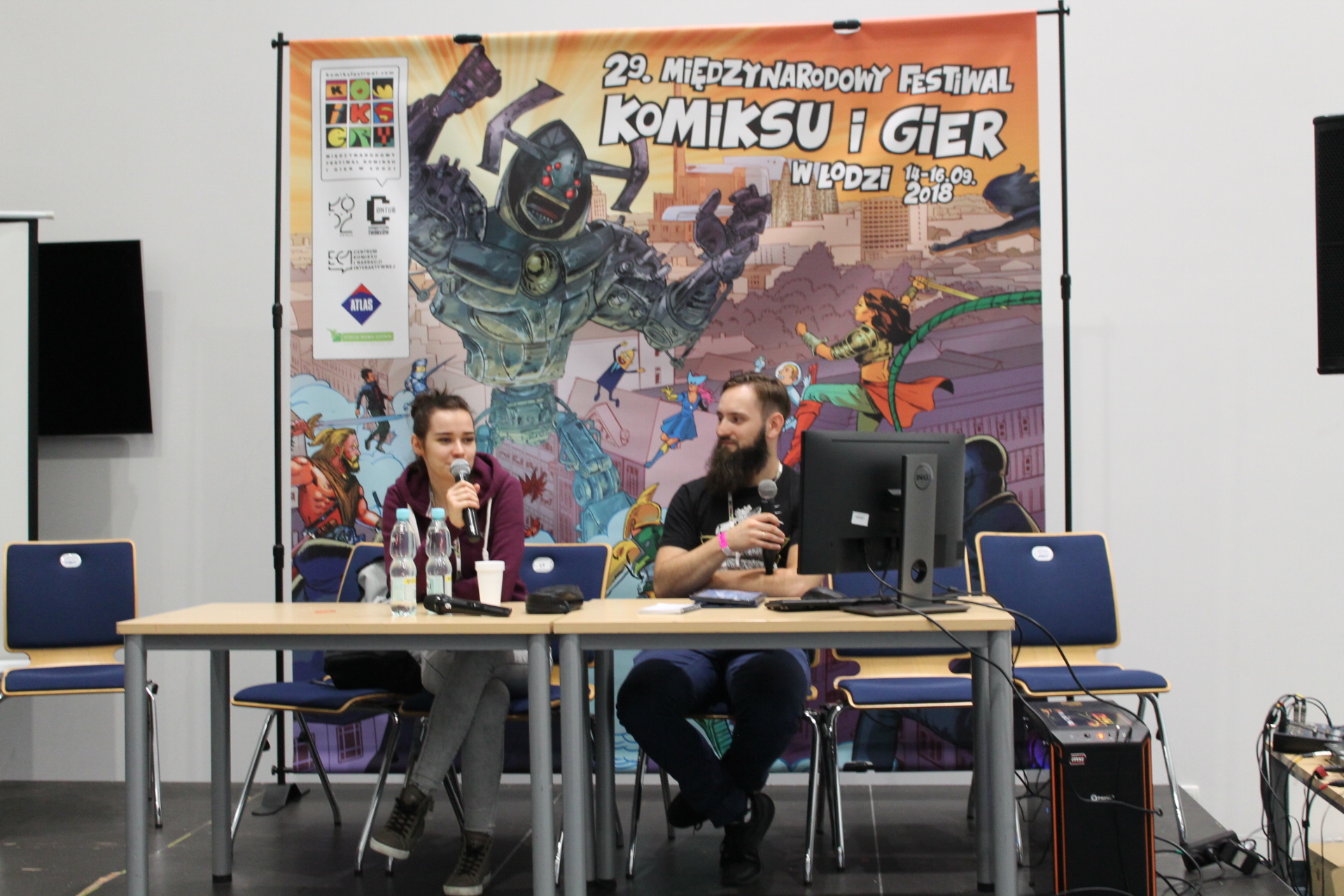 Wracając jeszcze na chwilę do komiksów. 14 września został określony Dniem Komiksu Historycznego. Miało to swoje uzasadnienie w tym, że Polska w tym roku obchodzi 100-lecie odzyskania niepodległości. Z tej okazji przez cały piątek można było podyskutować o tym jak polska historia jest prezentowana przez twórców komiksów. Gdyby tego było mało, to na płycie Atlas Areny została stworzona specjalna wystawa poświęcona komiksom historycznym, którą można było podziwiać przez trzy dni trwania festiwalu. Osobiście uważam całą tą inicjatywę za bardzo pozytywny ruch ze strony organizatorów, bo mogła ona przybliżyć najmłodszym gościom imprezy historię naszego kraju w przyjemy sposób.