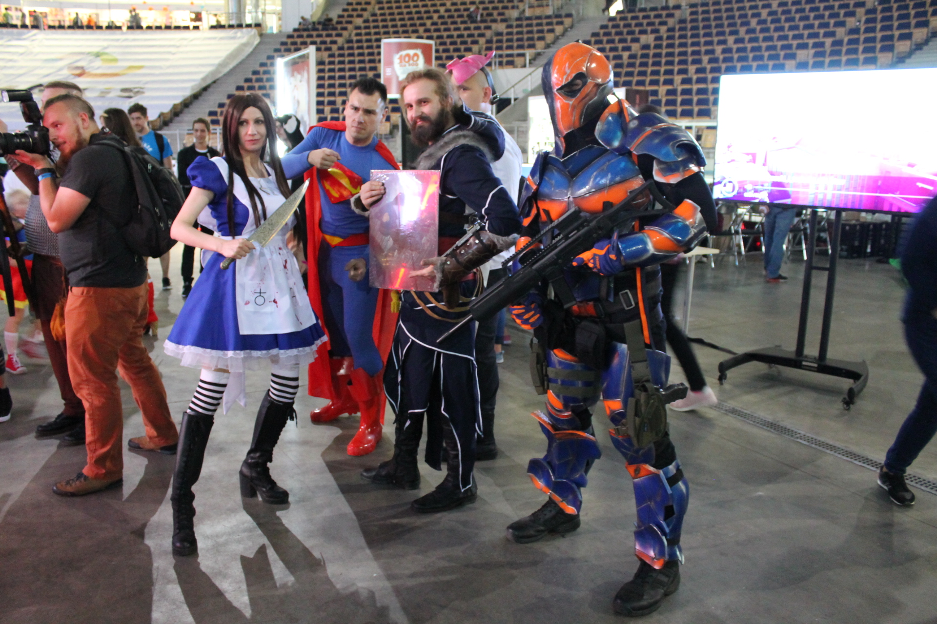 Mówiąc o wydarzeniu takim jak MFKiG nie mogę nie wspomnieć o cosplayerach. Osobiście odnoszę wrażenie, że było jeszcze lepiej niż w tamtym roku. W murach Atlas Areny można było stanąć twarzą w twarz między innymi z oddziałem szturmowców z Gwiezdnych Wojen dowodzonych przez Dartha Revana. Poza bohaterami gwiezdnej sagi nie zabrakło postaci z kart komiksów DC czy mojego faworyta jakim był Sora z Kingdom Hearts. Oczywiście jak co roku odbyła się gala cosplay podczas której atmosfera na płycie stała się tak gęsta, że można było ją kroić nożem. Osobiście uważam, że wszyscy uczestnicy prezentowali wysoki poziom od strony wykonania strojów, aż po prezentacje swoich umiejętności. Tuż obok gali obywał się inny ważny turniej jakim był Fighting Games Challange, w którym spragnieni rozrywki fani bijatyki mogli obserwować jak majestatycznie okładają się po twarzach ich ulubieni bohaterowi sterowani przez utalentowanych zawodników.