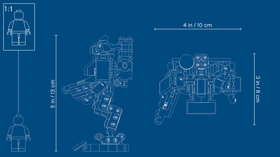 Wyjątkowy zestaw Blizzarda składa się ze zbudowanego z klocków LEGO Bastiona w skórce Kryzys omniczny oraz ozdobnej podstawki. Figurka posiada obrotowy korpus, ruchome ramiona i broń wbudowaną w prawe ramię, a także zaufanego przyjaciele Bastiona, Ganimedesa.