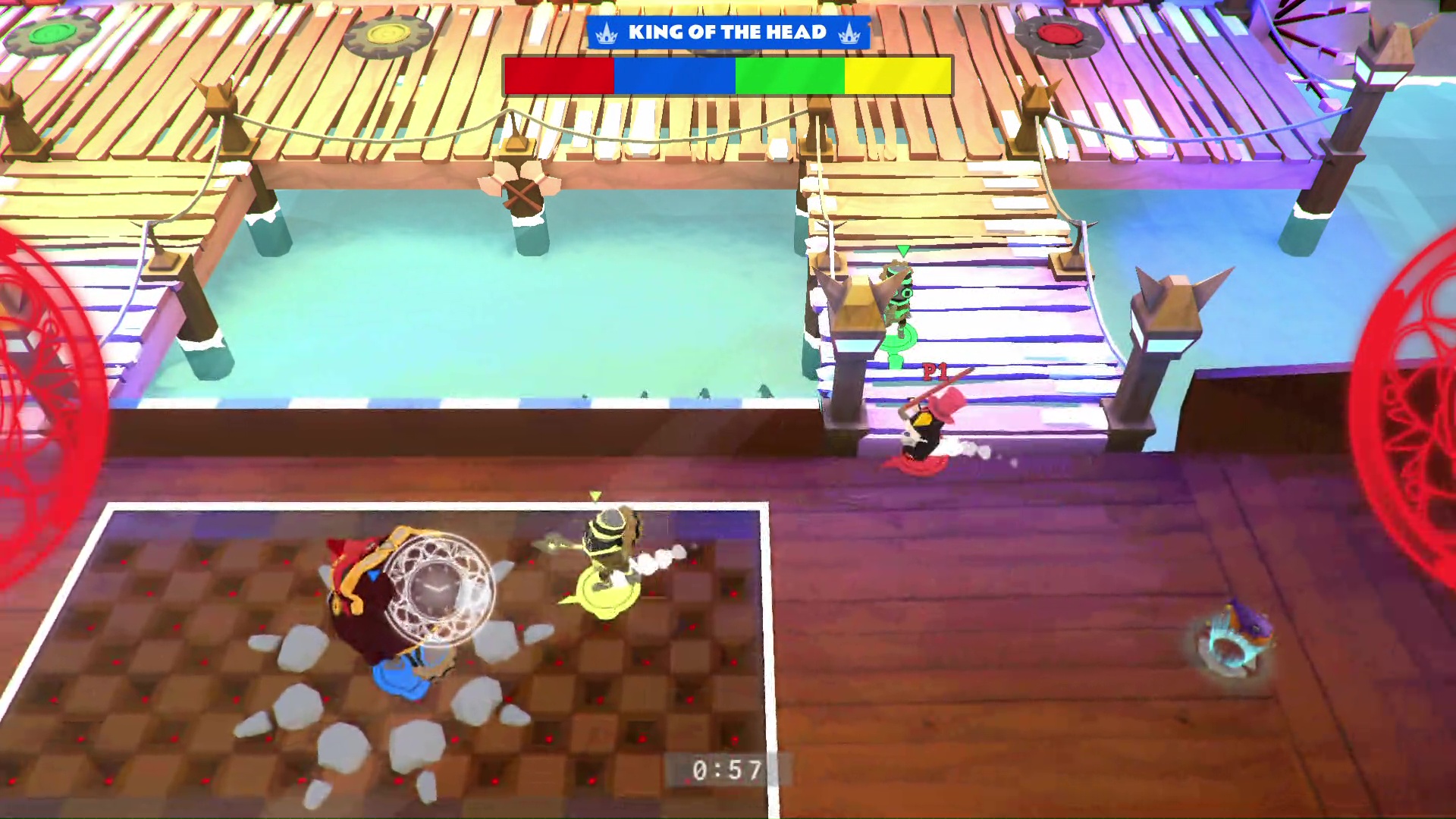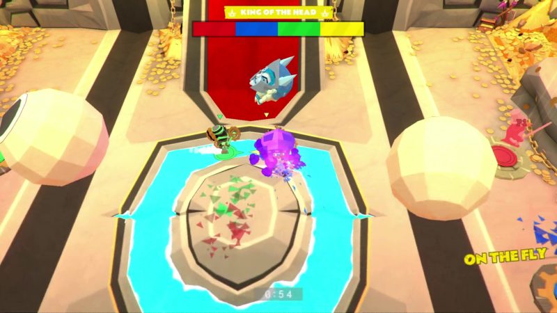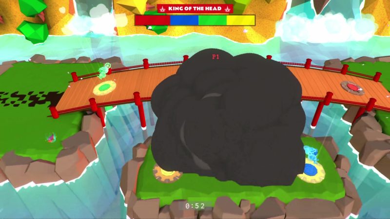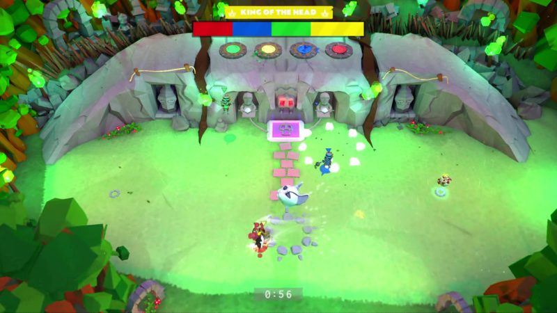 Znacznie ciekawiej wypadają pozostałe dwa tryby gry, gdzie do zabawy dołączają potężne statuetki w kształcie wielkich głów. Każda z nich posiada unikatowe właściwości, wpływające nieco na rozgrywkę. Czasem podniesienie statuetki może wiązać się z odwróceniem sterowania, otoczeniem się zasłoną dymną, czy spowolnieniem pozostałych zawodników. Capture the Head to wariacja na temat trybu Capture the Flag, gdzie gracze muszą dostarczyć wielką głowę w określone miejsce. Za to w King of the Head wygrywa zawodnik, który w określonym limicie czasowym będzie trzymał statuetkę najdłużej.