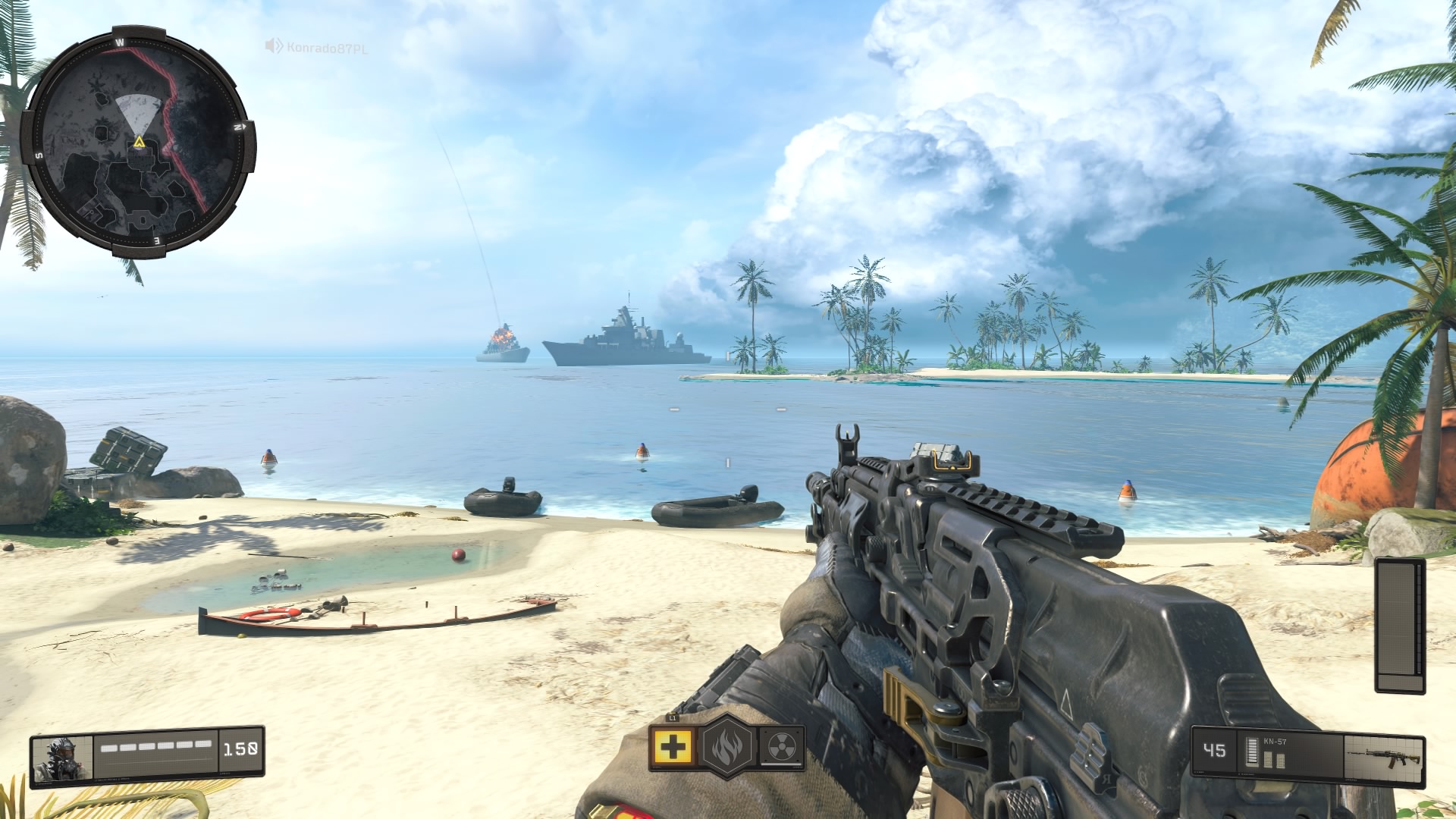 Zbieramy najpotrzebniejsze przedmioty i szybko się przemieszczamy, nie leżymy w krzakach po kilka minut, słysząc nadbiegającego gracza wyskakujemy mu na przeciw licząc, że nasze pociski szybciej przebiją jego pancerz. Treyarch pokazuje, jak powinien wyglądać szybki i dynamiczny Battle Royal. Do tego ważną informacją jest fakt, że Blackout działa na PS4 Pro bardzo stabilnie, nie jest to co prawda 60 klatek, które są standardem dla trybu wieloosobowego Call of Duty, ale 40 – 50 FPS/s na pewno jest. Na mapie może się obecnie znajdować do 88 graczy, to znakomity wynik patrząc na to, że w Call of Duty zawsze mogło grać od 12 do 18 graczy. Grać możemy solo oraz w zespołach dwu lub czteroosobowych. Po mapie możemy poruszać się pojazdami, największą atrakcją jest helikopter, który służy do szybkiego transportu powietrznego. Po lądzie jeździć możemy quadem i ciężarówką, natomiast po wodzie pozostaje nam się poruszać pontonem lub sami możemy rzekę przepłynąć nawet będąc kilka sekund pod powierzchnią.