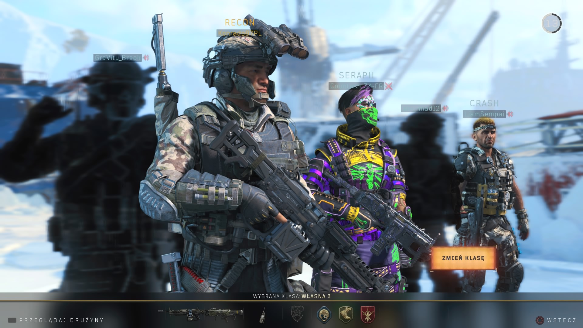 Jak wspomniałem w Black Ops 4 mamy czterech nowych specjalistów: Ajax, Crash, Recon i Torque. Jako wielki fan klasy wsparcia szybko polubiłem się z Crashem oraz Reconem. Crash wspiera swój zespół amunicją, która przyśpiesza zdobywanie nagród za serię punktów, natomiast jego superzdolnością jest zestaw TAK-5, gracze którzy znajdują się w pobliżu otrzymują dodatkowy pakiet 50 punktów życia. Recon jest za to dodatkowymi oczami dla swojego zespołu, jego umiejętnością jest strzałka sensorowa, która na małym okrągłym obszarze minimapy ujawnia ruchy przeciwników. Impuls rozpoznania jest potężną superzdolnością, która przez kilka sekund prezentuje nam przed oczami pozycje przecinków, wszyscy gracze mają zaznaczone sylwetki wroga – nawet tych za przeszkodami.