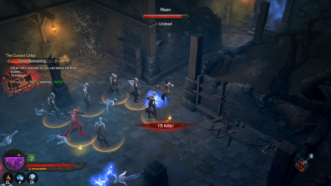 Gra oferuje słynny lokalny tryb wieloosobowy. Na jednym Switchu możemy zagrać nawet z trzema dodatkowymi graczami, zarówno w wersji przenośnej, jak i na TV. Przed premierą gry bałem się jak wypadnie sterowanie. Diablo jednak używa wielu przycisków; na standardowych padach od Xboxa czy PlayStation wykorzystane są wszystkie przyciski, więc moje obawy o sterowanie pojedynczym Joyconem były uzasadnione.