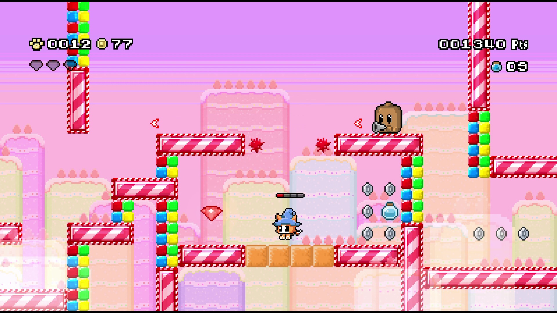 Wszystkie zdobywane po drodze przedmioty mają w grze jakieś zastosowanie, dzięki czemu faktycznie opłaca się je zbierać. Sto monet daje nam dodatkowe życia, pozwalające odradzać się w miejscu, gdzie zginęliśmy (zamiast wracać na początek etapu, bądź do ostatniego punktu kontrolego). Niebieski napój używamy głównie do odblokowania punktów kontrolnych. Najcięższe do zdobycia kryształy możemy użyć podczas robienia zakupów w porozrzucanych po świecie sklepach.