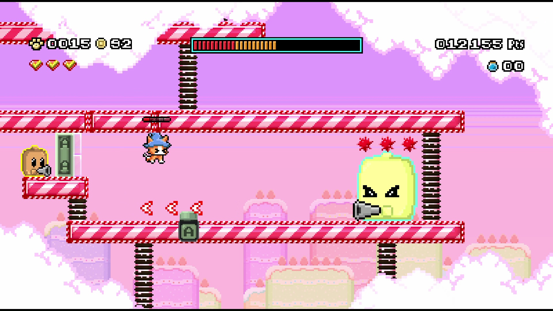 Pod względem rozgrywki mamy tutaj do czynienia z dość standardową, dwuwymiarową platformówką. Twórcy postawili przed graczami 7 światów złożonych łącznie z 63 etapów. Zdecydowana większość plansz składa się z kilku zręcznościowych segmentów, na których zbieramy monety, butelki z niebieskim napojem, czy trzy czerwone kryształy. Przygotowane przez twórców poziomy są nieźle zaprojektowane. Częste wprowadzanie nowych mechanik zapobiega nudzie. Na końcu każdego etapu musimy stoczyć walkę z bossem. Niestety, w większości przypadków nie znajdziemy tutaj żadnych pomysłowych przeciwników – zwykle mamy walczymy przeciwko większej wersji znanego już wroga.