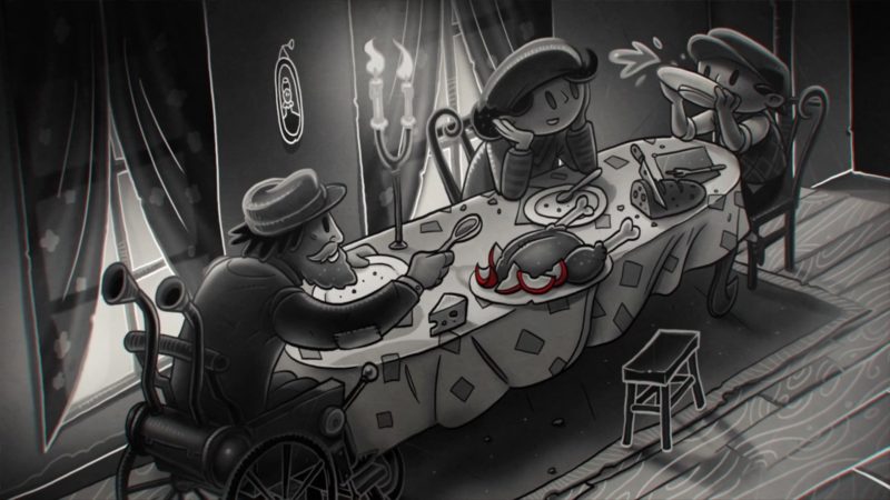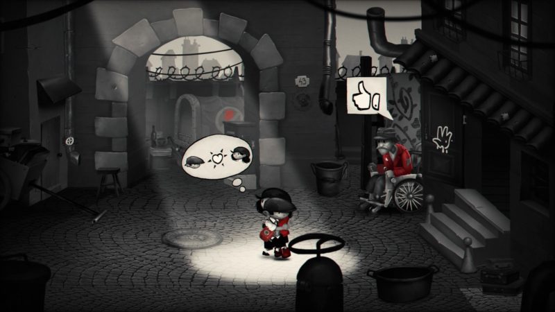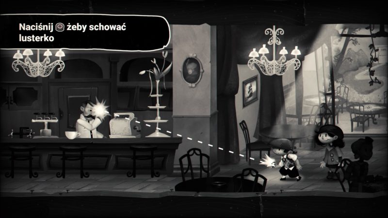 Twórcy w fajny sposób wykorzystali to wszystko podczas naszej przygody. Trzeba zrzucić jabłka z drzewa? Nie ma problemu, dziewczynka bierze proce w rączki i po chwili nasz koszyk jest pełen owoców. Potrzebujemy alkoholu, który właśnie spożywa jakiś jegomość siedzący na rusztowaniu? Oślepiamy go przy pomocy naszego lustereczka, a ten wypuszcza butelkę.