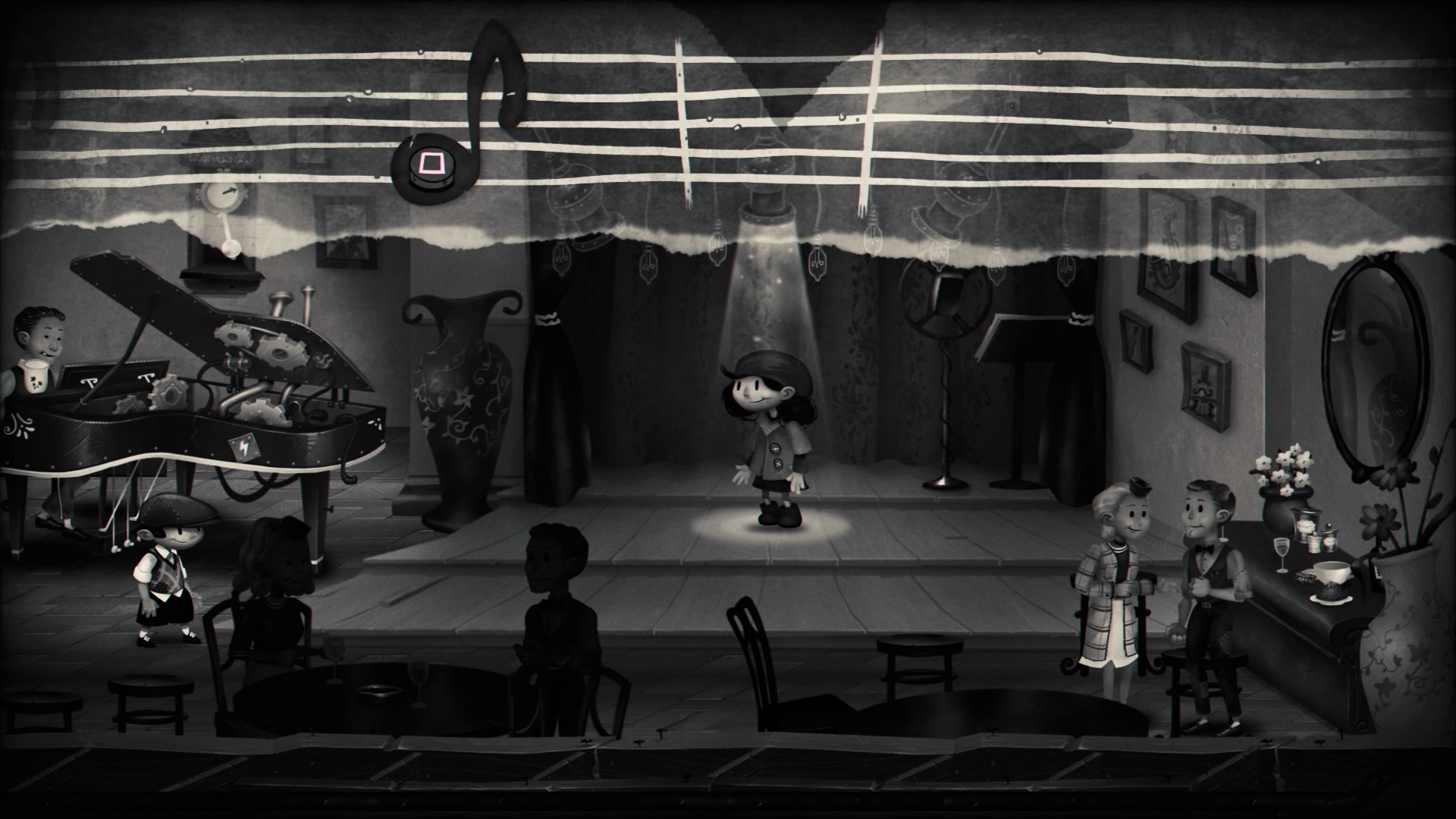 My Memory of Us prezentuje się po prostu dobrze, zastosowano tutaj w głównej mierze kolor czarny, biały i szary, wyjątkiem jest czerwony. Użyto go do wyróżnienia ludności żydowskiej, a także zaznaczenia potrzebnych w zadaniu przedmiotach. Postacie, lokalizacje są wykonane świetnie, mam jedynie zastrzeżenie do mimiki bohaterów. Wiele razy podczas smutnych sytuacji rzucał mi się w oczy uśmiech na twarzach naszej pary przyjaciół. Wydaje mi się, że byłoby o wiele lepiej, gdyby podczas np. ucieczki przed robotami nasi bohaterowie wyglądali na wystraszonych, a nie najszczęśliwszych na świecie.