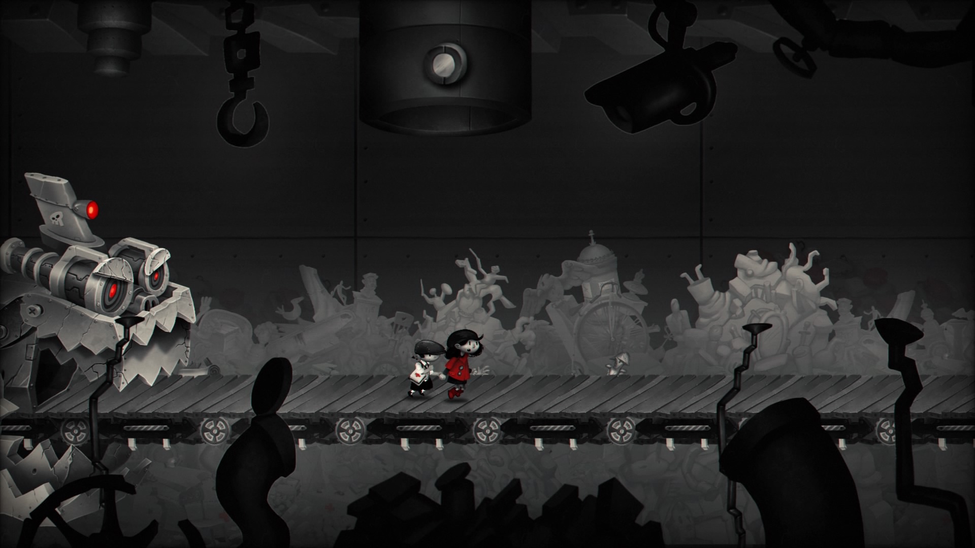 My Memory of Us to na szczęście nie tylko świetna fabuła, ale też przyjemna rozgrywka. Podczas naszej czterogodzinnej przygody natrafiamy nie tylko na typowe dla gier platformowych skakanie po planszy, wspinanie czy uciekanie przed robotami. Nasi bohaterowie posiadają dwie umiejętności, dziewczynka potrafi szybko biegać, a chłopiec skradać. Złapanie się za ręce sprawia, że we dwoje mogą korzystać z jednego atrybutu (w zależności od tego, kto prowadzi). W późniejszym etapie, przyjaciele otrzymują kolejną umiejętność. Chłopiec może oślepiać przeciwników za pomocą lusterka, a dziewczynka strzelać z procy.