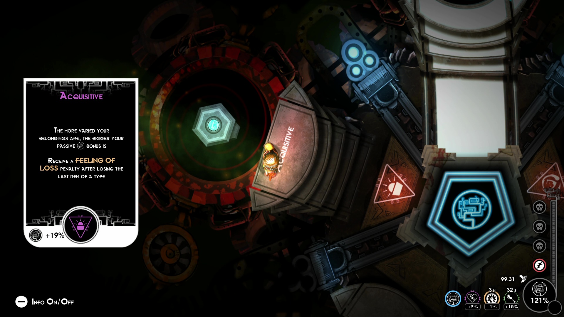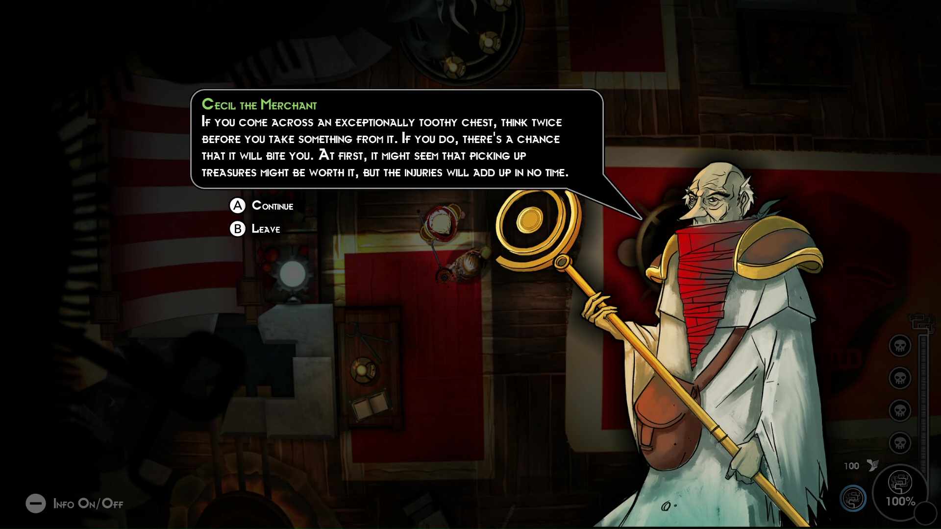 Rozpoczynając zabawę po raz pierwszy produkcja oferuje nam prosty samouczek, pozwalający poznać podstawy rozgrywki. Zaraz po tym możemy wyruszyć z Sanktuarium do kolejnych, losowo generowanych poziomów, wypełnionych różnorakimi wrogami, czy skrzyniami z przydatnymi przedmiotami. Jeżeli po drodze powinie się nam noga i zginiemy, tracimy praktycznie wszystkie posiadane skazy oraz przedmioty, których nie pozostawiliśmy w przeznaczonym do tego miejscu. Zanim jednak zginiemy, tracąc cały pasek zdrowia otrzymujemy ranę, a dopiero cztery rany oznaczają dla nas śmierć.