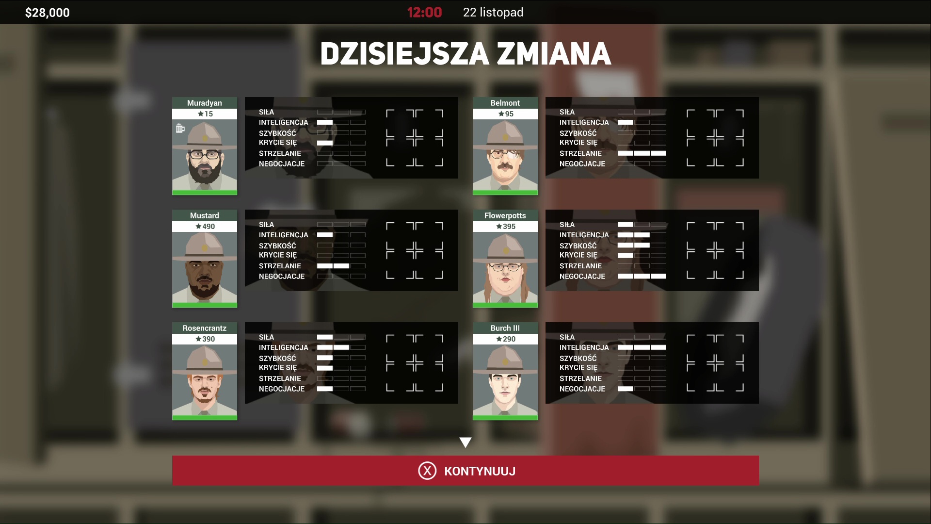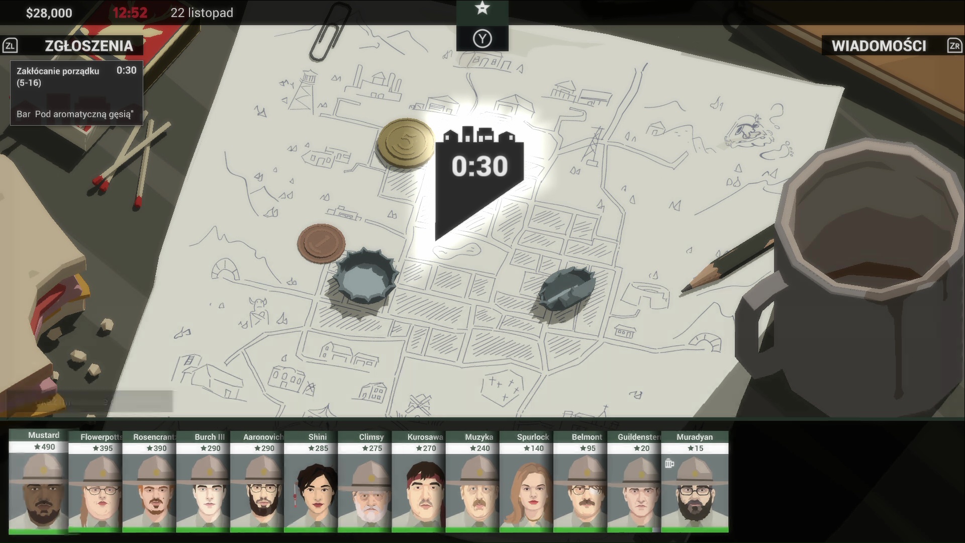 Kończąc pracę wybieramy także którzy funkcjonariusze mają się zjawić na służbie kolejnego dnia. Niestety, aż nadzwyczajnie często zdarzają się różnorakie wypadki losowe, przez które policjanci nie chcą przyjść do pracy, bądź przychodzą pijani. Wszystko to prowadzi do częstych sytuacji, gdzie pracujemy z ograniczoną liczbą policjantów, nieraz wymuszając na graczu pomijanie niektórych zgłoszeń.