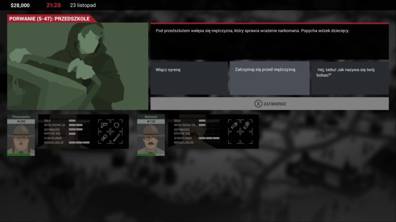 This is the Police 2 ma wiele zalet, które mogłyby przyciągnąć graczy na wiele udanych godzin. Niestety, mam spore zastrzeżenia do jakości portu dla konsoli Nintendo Switch. Interfejs gry nie został zbyt dobrze dostosowany do trybu przenośnego. Szkoda, że twórcy nie zdecydowali się na dodanie opcji sterowania za pomocą ekranu dotykowego. Produkcja ma też trochę problemów ze standardowym sterowaniem. Przykładowo, przewijając listy nie działa strzałka w górę na krzyżaku. Czasem gra zupełnie uniemożliwia przewijanie list nawet za pomocą gałki, a jedyną opcją naprawy problemu jest ponowne uruchomienie gry. Niestety, nie brakuje także błędów wyrzucających do menu głównego konsoli.