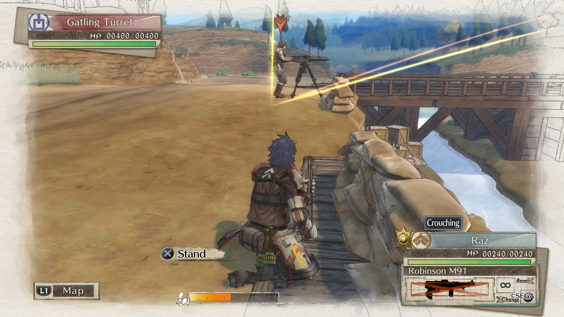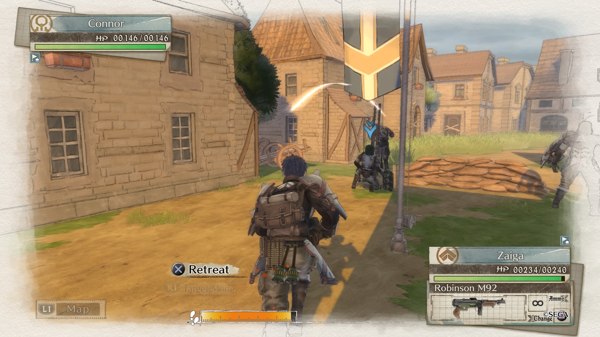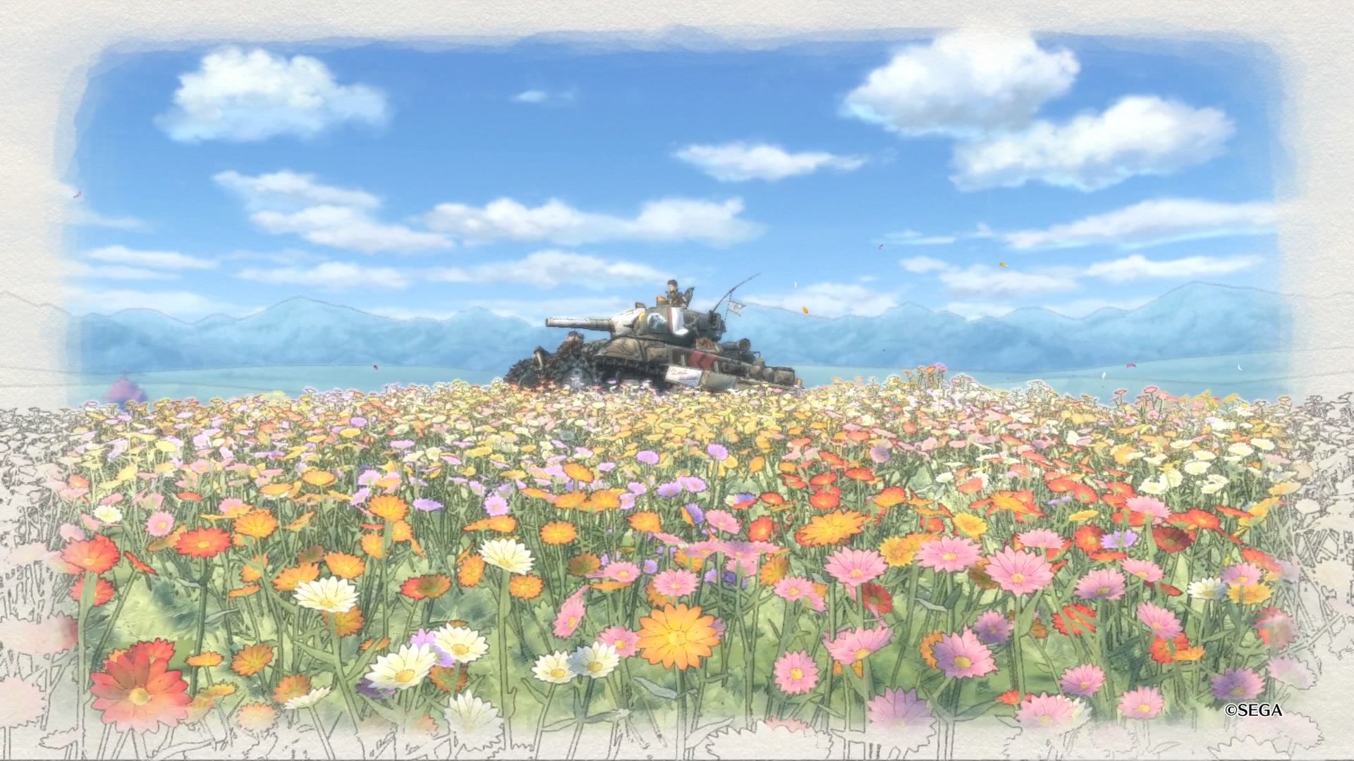Wracając jeszcze do samego przedstawienia fabuły. Przez większość czasu widzimy całkiem niezłe ukazanie, tego, że wojna zmienia ludzi oraz wpływa na ich światopogląd oraz ogólnie przyjęte wartości. Przez to, że mamy jednak do czynienia z produktem stworzonym w Japonii, to w misjach pobocznych pojawia się już typowy japoński humor. Najbardziej uderzyło mnie to w momencie, w którym najpierw słyszę jak to wojna jest zła, że nie można porzucać swoich towarzyszy a za tło tego wszystkiego robi szpital polowy, gdzie mamy wielu rannych żołnierzy. Po tej sugestywnej scenie, odpaliłem jeden z dodatkowych epizodów i zostałem uderzony żartami na temat damskiej bielizny. Oczywiście nie są one obowiązkowe do przejścia fabuły, jednak jak człowiek już odpali taki epizod to nagle cały klimat wywraca się z impetem na plecy.