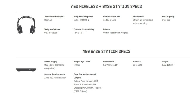 Astro to gamingowy dział Logitecha, a model A50, to najdroższy model z ich linii słuchawek bezprzewodowych, które możemy podłączyć do PS4 i PC – można słuchawki podłączyć też do Xboxa One, ale będzie to wymagało od was dokupienia dodatkowej stacji dokującej, która kosztuje 100 dolarów. Zostając przy docku, to muszę szybko was poinformować, że stacja łączy się z konsolą za pomocą kabla USB, który służy do zasilania urządzenia oraz kabla optycznego, który odpowiada za przesyłanie dźwięku. Jak dobrze wiecie konsola PS4 Slim została pozbawiona tego gniazda i niestety do tego modelu nie podłączymy słuchawek Astro A50, no chyba, że chcecie się bawić w rozdzielacz HDMI z gniazdem optycznym. Jednak bez żadnych komplikacji Astro A50 są przeznaczone do pierwszych modeli PS4 (Fat) oraz PS4 Pro oraz, jak wspomniałem pecetów, a PC niestety będzie wam tutaj bardzo potrzebny. Na szczęście wystarczy do tego zwykły laptop z gniazdem USB, bo tylko do tego portu wystarczy podłączyć słuchawki, aby ich użytkować.