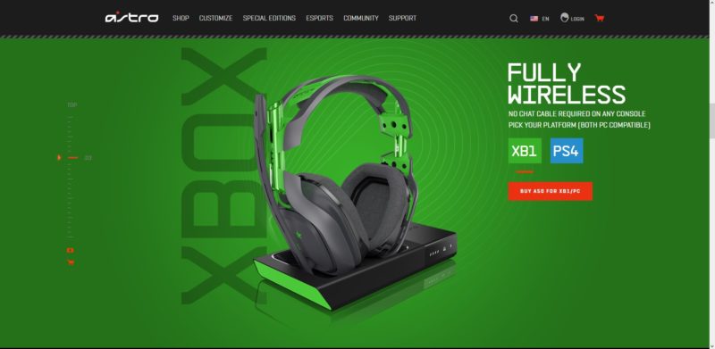 Słuchawki bezprzewodowe Astro A50 są dostępne w dwóch wersjach: Niebieskie na PS4 i PC oraz zielone na Xbox One i PC.