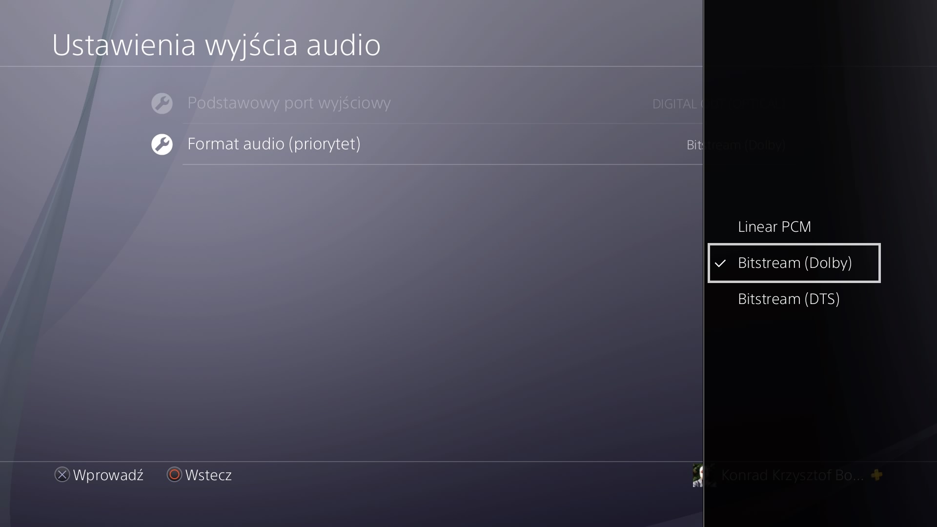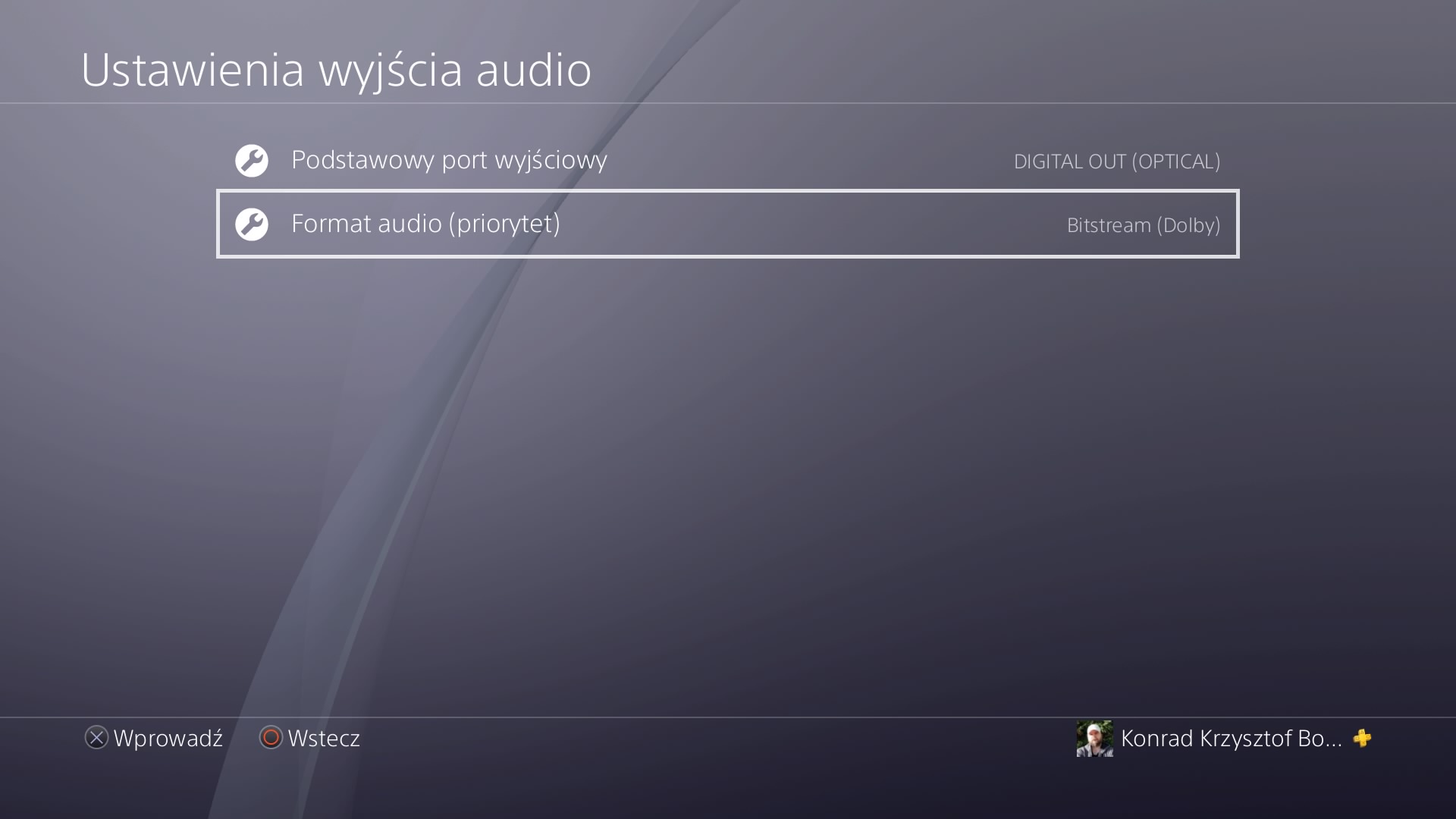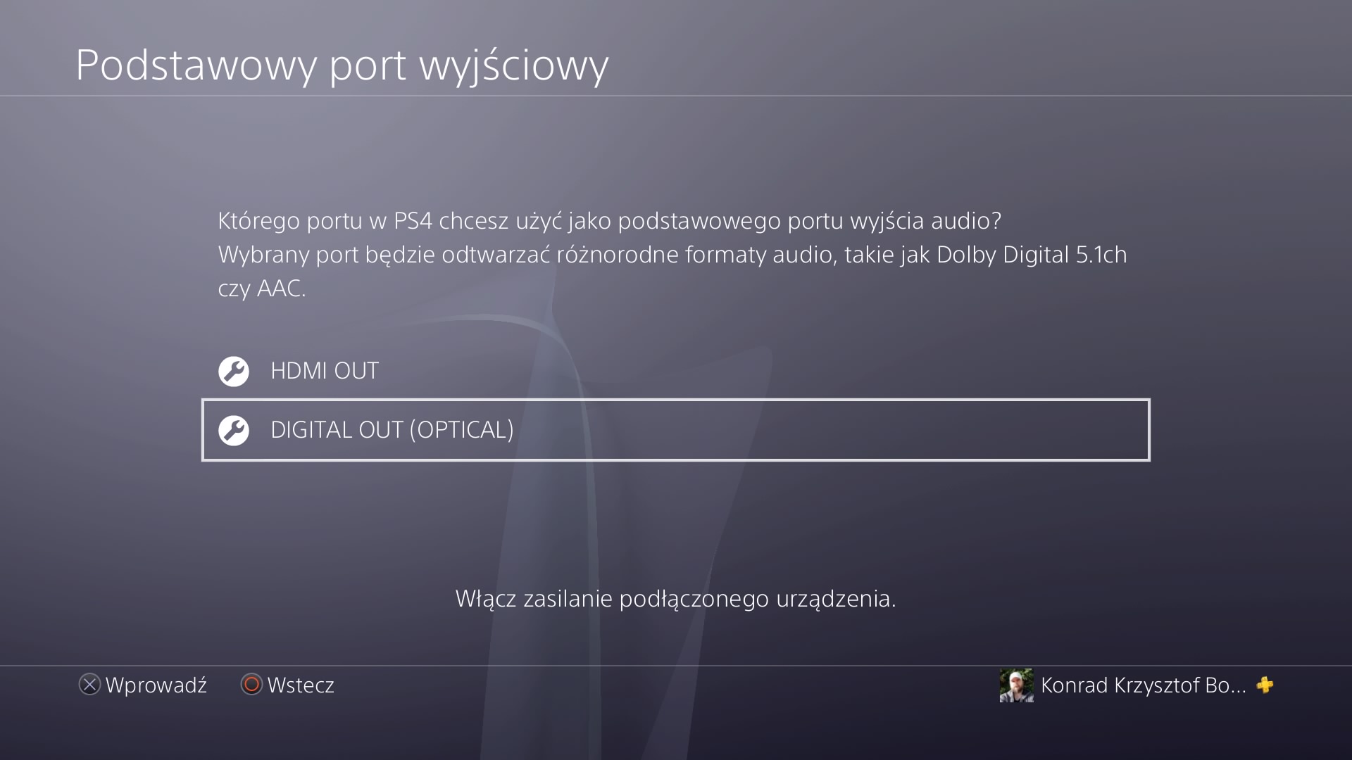 Mając wgrane najnowsze oprogramowanie podpinamy stację bazową do PS4, kabel USB do dowolnego wolnego portu, najlepiej z tyłu PS4 oraz kabel optyczny do konsoli, a w stacji bazowej do gniazda OPT-IN. Przesuwamy suwak po prawej stronie na PS4 i zajmujemy się konfiguracją, wchodzimy w ustawienia obrazu i dźwięku, wybieramy podstawowy port wyjściowy na „Digital OUT (optical)” następnie zaznaczamy tylko „Dolby Digital 5.1ch”. Format audio ustawiamy na „Bitstream (Dolby)”. Niestety to jeszcze nie koniec ustawień, wchodzimy w „Urządzenia” -> „audio”, upewniamy się że w „Urządzeniu wejściowym i wyjściowym” jest wybrany „Zestaw słuchawkowy USB (Astro A50)”. Na samym dole znajdziemy „wyjście na słuchawki”, tam wedle producenta musimy ustawić „Czat głosowy”, to wszystko, Astro A50 są skonfigurowane i gotowe do pracy z PS4.