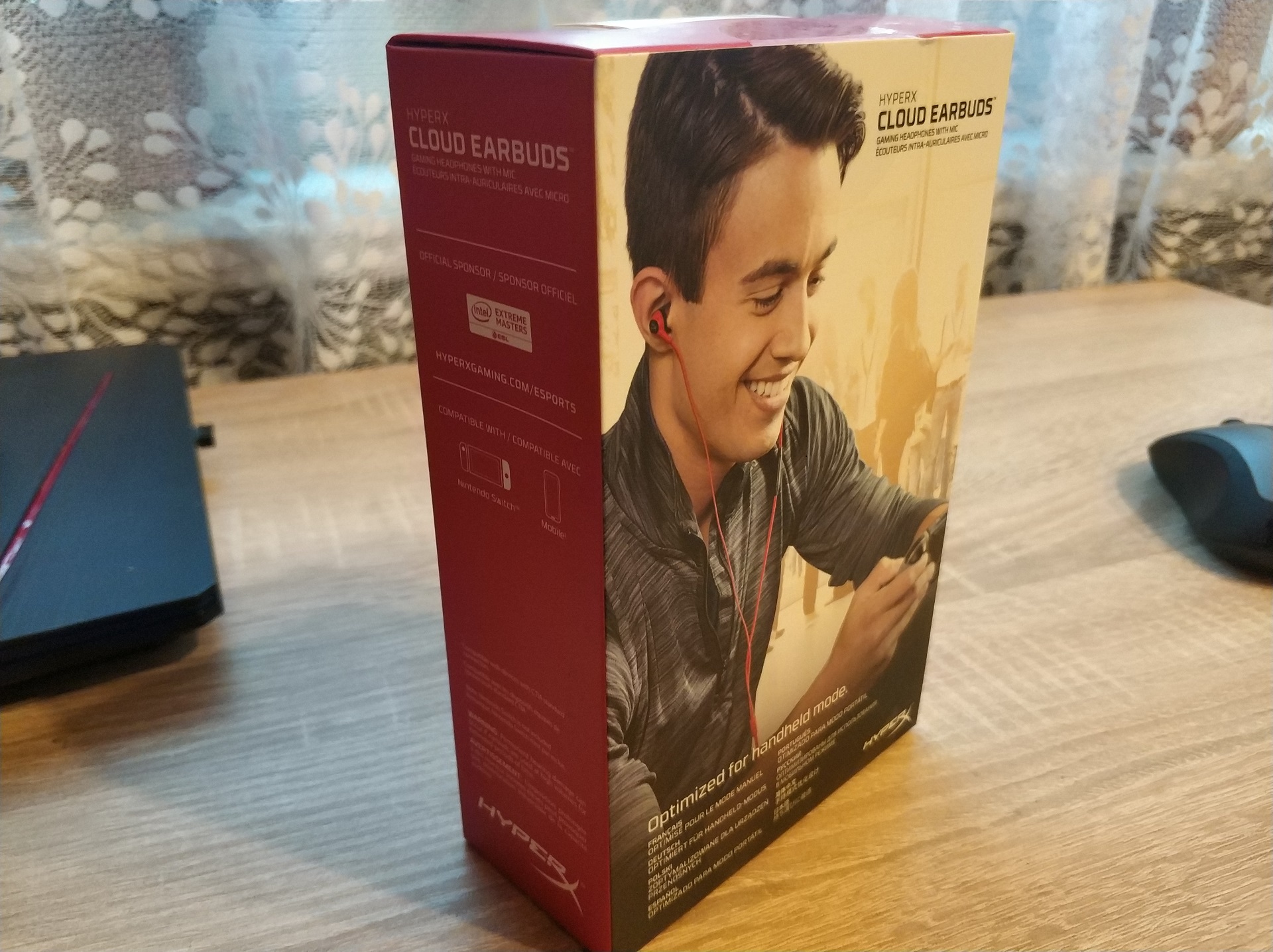 Przejdźmy więc do samych słuchawek HyperX Cloud Earbuds. Przychodzą one w całkiem sporym, biało-czerwonym pudełku. Nie zawarto na nim zbyt wiele informacji – przeczytać możemy głównie o kompatybilności, czy okresie gwarancji.