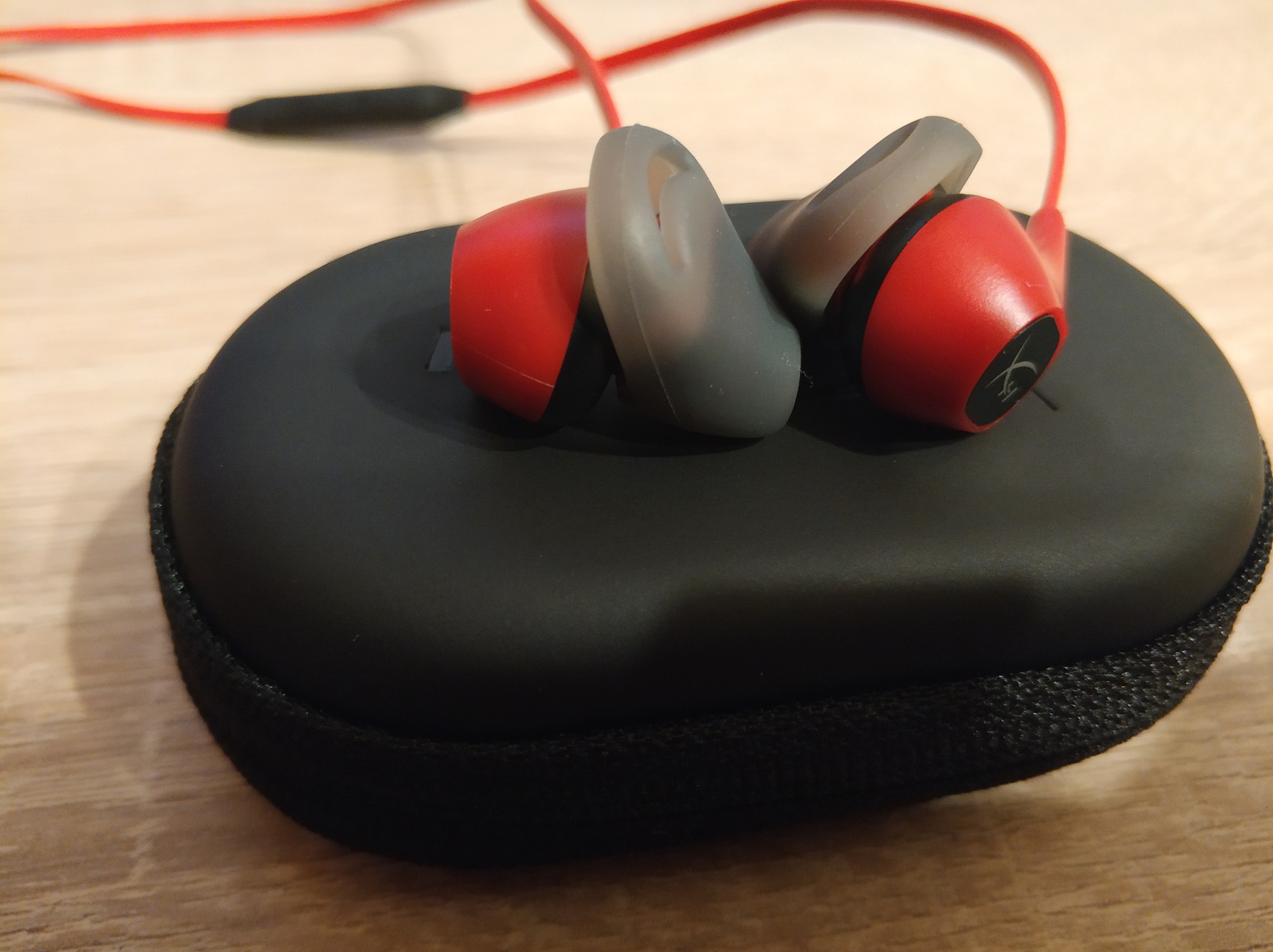Mocno zawodzi jednak wspomniany wcześniej pilot. Ze względu na jego umiejscowienie, korzystanie z niego nie jest zbyt wygodne. Dodatkowo zawiera on wyłącznie jeden przycisk, zupełnie bezużyteczny na konsoli Nintendo Switch. Podpinając HyperX Cloud Earbuds do smartfona pozwala on na pauzowanie / przełączanie na następny utwór podczas słuchania muzyki, bądź też odebranie połączenia. Brakuje niestety opcji sterowania głośnością, co jest odczuwalne podczas słuchania muzyki na telefonie schowanym do kieszeni.