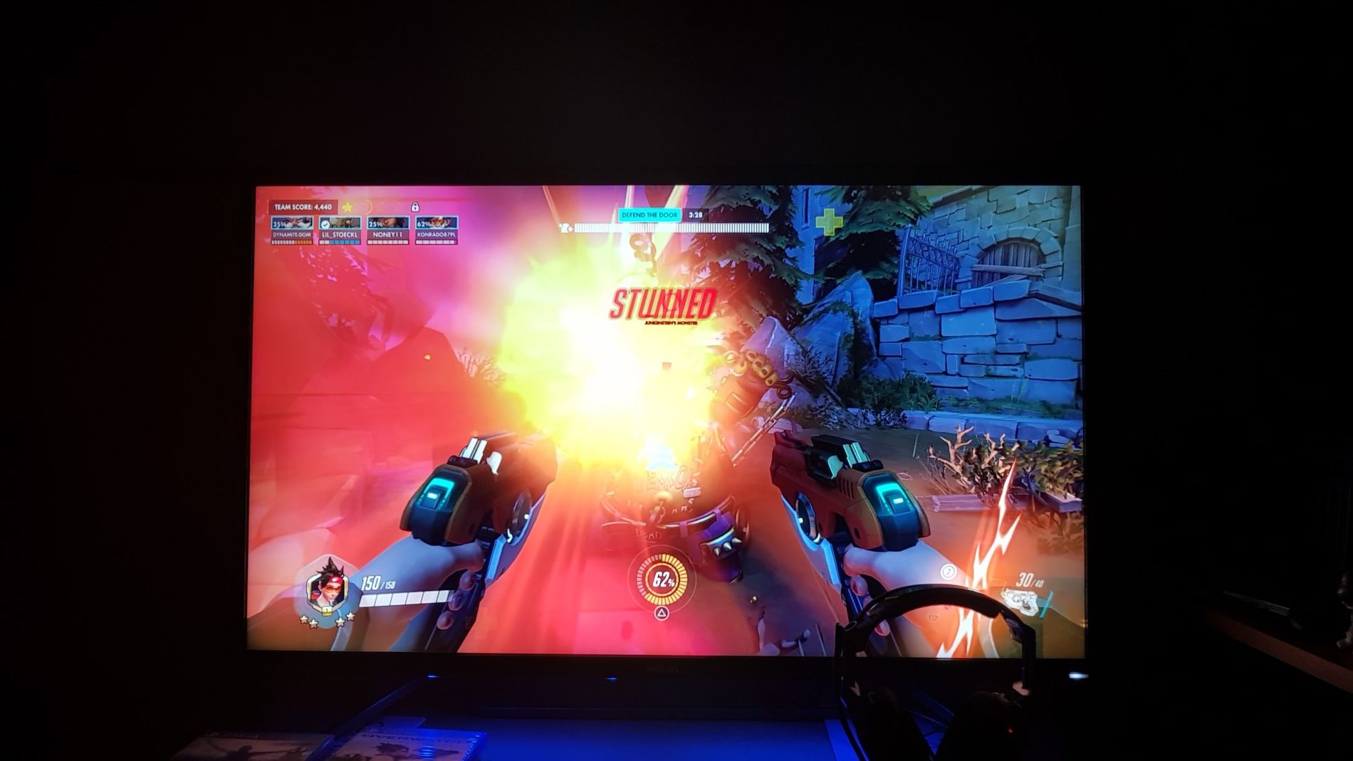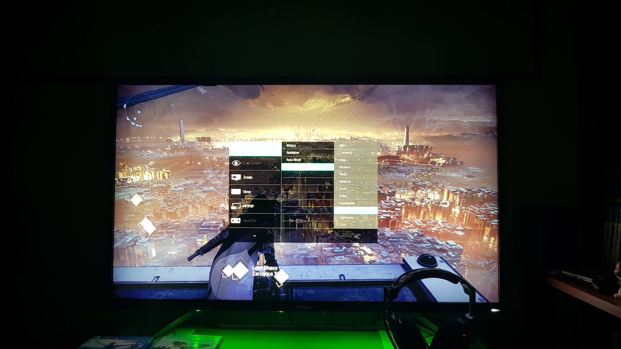 Philips zawsze będzie kojarzył mi się ze światełkami Ambilight, które powiększają obszar wyświetlanego obrazu emitując klimatyczne podświetlenie na ścianie za telewizorem zgodne z barwami, które wyświetlane są na ekranie. Osobiście jestem wielkim fanem tego efektu, jednak, to co zastosowano w Philipsie Momentum mocno mnie rozczarowało. Diody zostały umieszczone nie w tylnej obudowie monitora, a w jego dolnej części. Efekt jest taki, że światło pada tylko na stolik, na którym jest umieszczony monitor. Niestety mnie to bardzo rozpraszało, pomimo, że system ten działa prawidłowo i barwy są dobierane odpowiednio, to jednak ciężko skupić się na rozgrywce, czy oglądaniu filmu mając efekty świetlne pod ekranem, zamiast na całej ścianie, jak to jest w telewizorach Philipsa z normalnym efektem Ambilight.