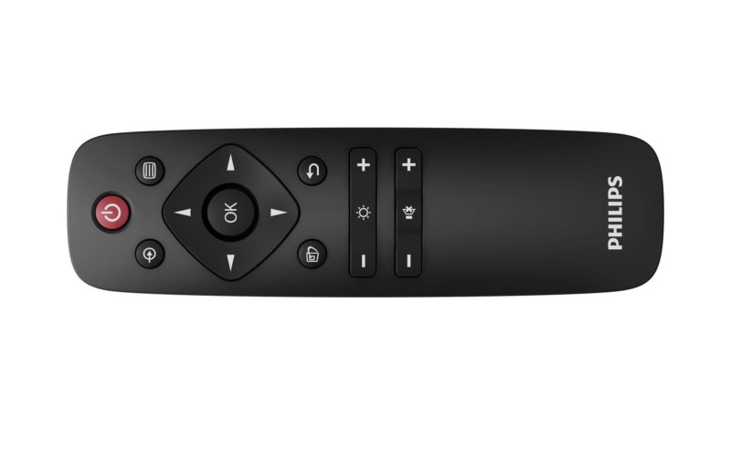 Do monitora dołączony został mały pilot, który zawiera podstawowe przyciski do sterowania urządzeniem. Niestety pierwsze chwile z użytkowaniem pilota uważam za frustrujące i był nawet taki moment, że uznałem go za popsuty lub, że ma wyładowane baterie. Jak się okazało nie można pilotem po prostu wycelować w monitor, bo wtedy albo nie łapie, albo reaguje bardzo wolno. Należy nacelować na dolny prawy róg ekranu, w który znajduje się duża dioda informująca o pracy urządzenia.