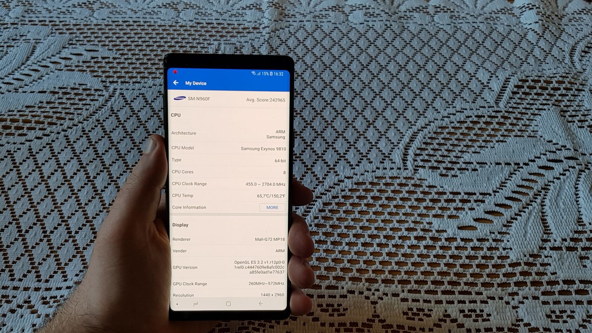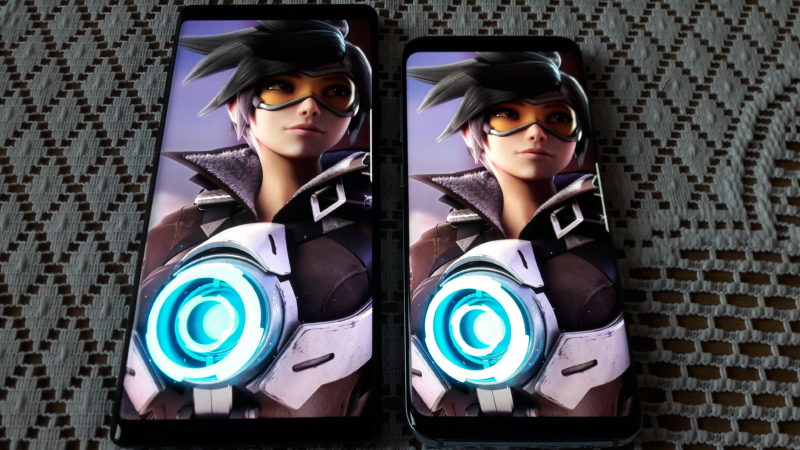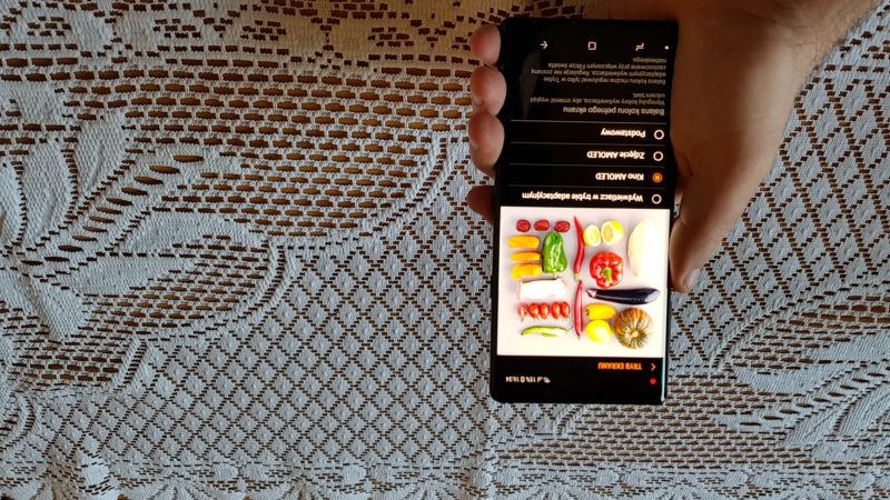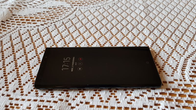Maksymalna rozdzielczość wyświetlacza Note 9 wynosi 2960×1440 pikseli, jednak domyślnie ustawiona jest na 2220×1080, aby oczywiście wydłużyć czas pracy baterii. Osobiście ciężko było mi dostrzec różnice między FHD+ a WQHD+, więc dłuższy czas pracy urządzenia jest tutaj priorytetem i cały czas używałem smartfonu z rozdzielczością FHD+. Maksymalna jasność wyświetlacza wynosi do 700 cd/m2, a jego wielkość to aż 6.4 cala – proporcje 18,5:9. Wymiary w mm 161.9 x 76.4 x 8.8, waga 201 gram. Wyświetlacz i plecki chroni szkło Gorilla Glass. Tutaj warto przypomnieć dla porównania, że najpopularniejsza obecnie przenośna konsola na rynku Nintendo Switch ma ekran wielkości 6.2 cala przy rozdzielczości 1280×720.