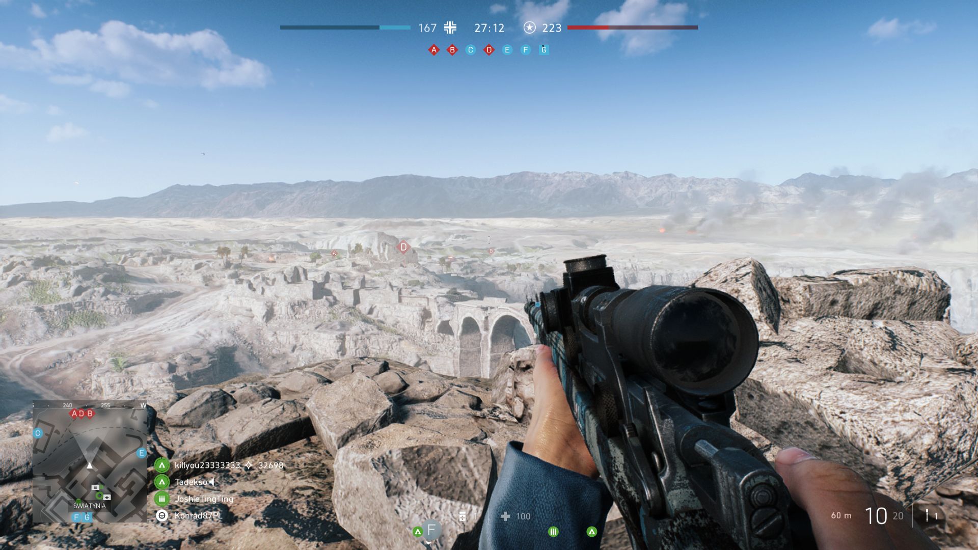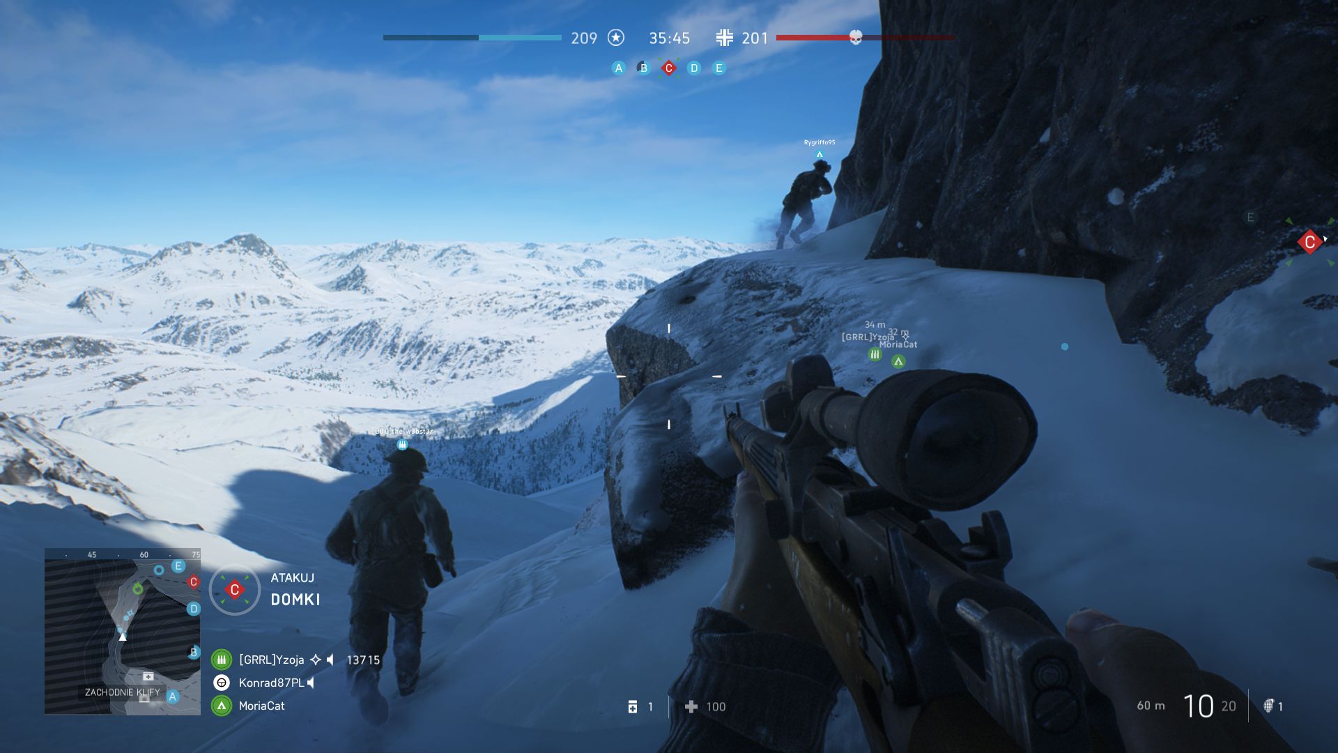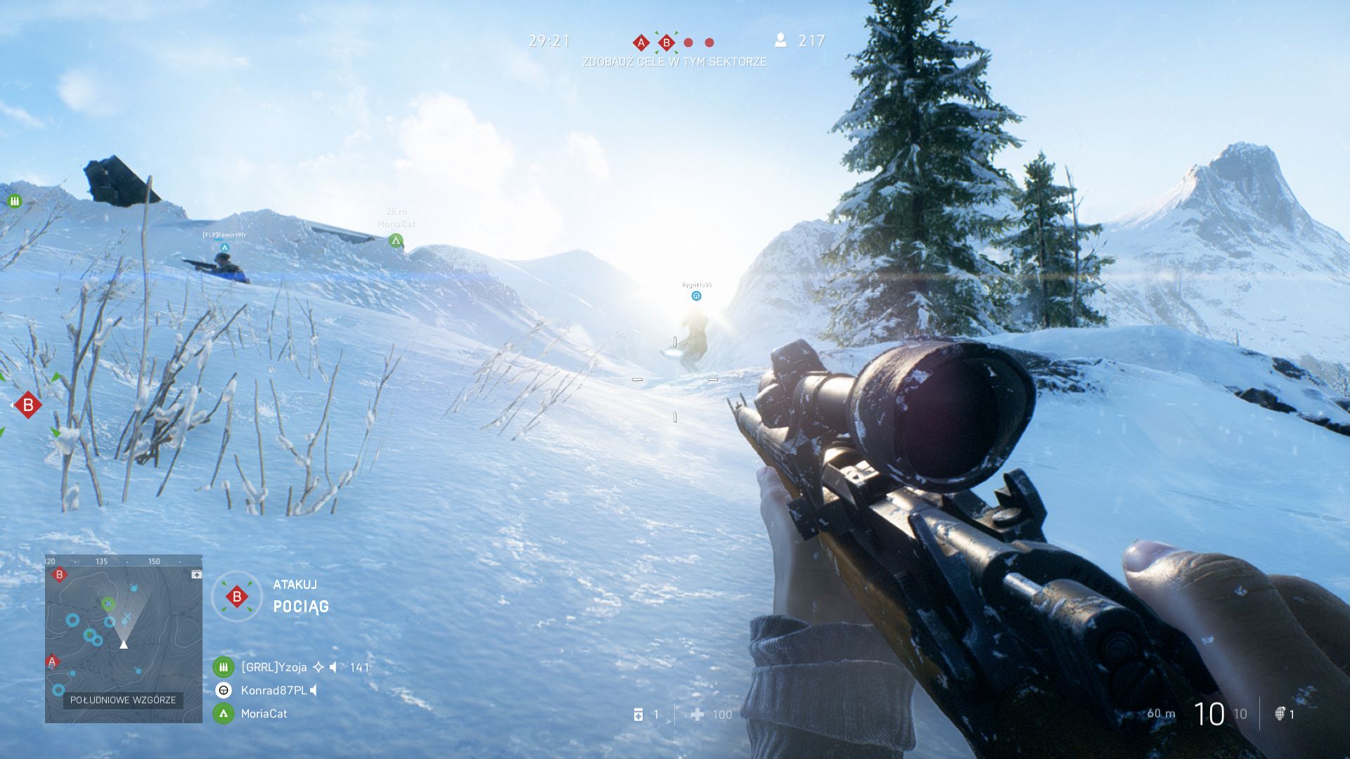 Kilka osób może się ze mną nie zgodzić, ale uważam, że TTK (Time to kill) czyli czas potrzebny do zabicia przeciwnika, jak na Battlefielda jest teraz zaskakująco niski, naprawdę wystarczy kilka pestek z dowolnego karabinu automatycznego, aby gracza powalić. Zastanawiam się, czy najnowszy CoD: Black Ops 4 w którym zwiększono paski życia z 100 do 150HP nie ma teraz nieznacznie dłuższego TTK. Co zaskakujące opadanie pocisków obowiązuje tylko w karabinach snajperskich. Szybki przykład, strzelam ze snajperki do gracza, który jest ode mnie oddalony o 130 metrów, pocisk opada kilka metrów przed nim. Wracam na to samo miejsce jako szturmowiec z LKMem wyposażonym w optykę x3 i nagle zadaje obrażenia graczom broniącym punktu. Jestem w szoku i przestaje grać klasą snajperską, przełączam się na szturmowca z wyposażonego w LKM z lunetą i śmiało zabijam snajperów na średnim dystansie ponieważ pociski tej broni nie opadają.