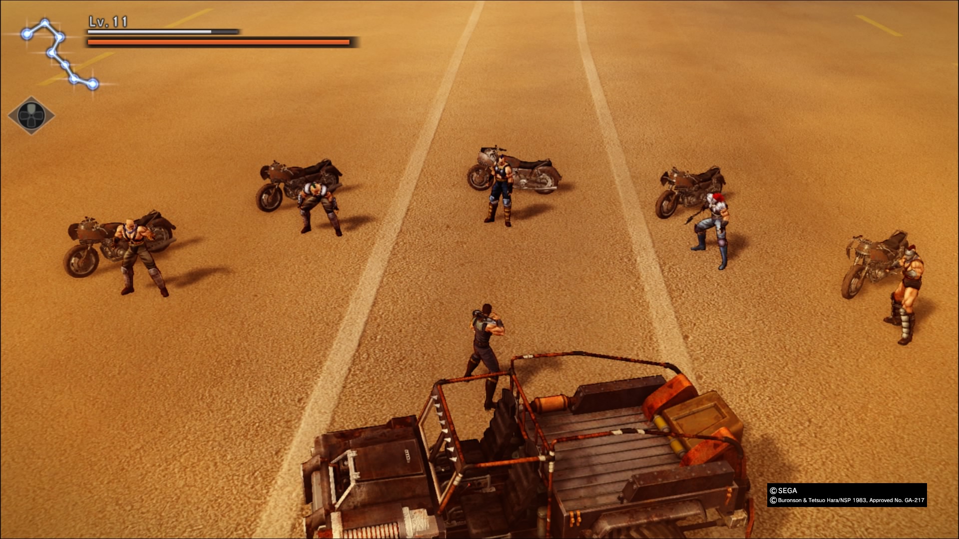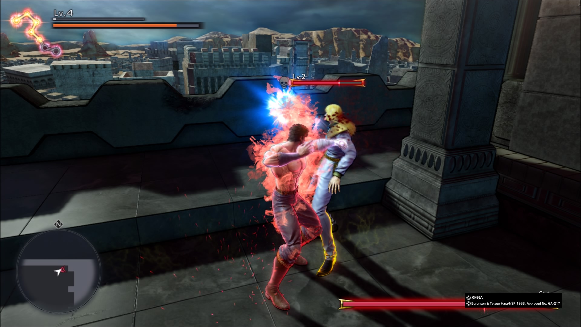 Zacznijmy jednak od początku, czyli fabuły. Na starcie, warto pochwalić twórców, że stworzyli oni nową fabułę, nie widzianą nigdy wcześniej w mandze ani w anime. Wiadomo, jest to historia prosta jak drut, ponieważ towarzyszymy Kenshiro w jego podróży w poszukiwaniu swojej ukochanej, czyli Yurii. Pomimo tego, że całość nie zdobędzie żadnych nagród za najlepszy scenariusz, to jednak wszystko trzyma się kupy (w ramach uniwersum oczywiście) i gracz z miłą chęcią przechodzi przez następne rozdziały. Jak to z twórcami Yakuzy bywa, oddali oni w nasze ręce tonę zadań pobocznych. Aktywności te dzielą się na dwa typy – ciekawe i nudne. Jeśli więc graliście kiedykolwiek w japoński symulator gangstera o miękkim sercu to wszystkie zadania już widzieliście, teraz tylko mają nową otoczkę. Niestety do fabuły wkrada się jeden poważny mankament. Chodzi mianowicie o przerywniki filmowe i długość dialogów. Kiedy w przygodach Kiryu każdy dialog trzymał klimat i dodawał swoje trzy grosze do całości, to u Kena czasami zbyt długie wstawki dialogowe wybijają z wysokooktanowej akcji.