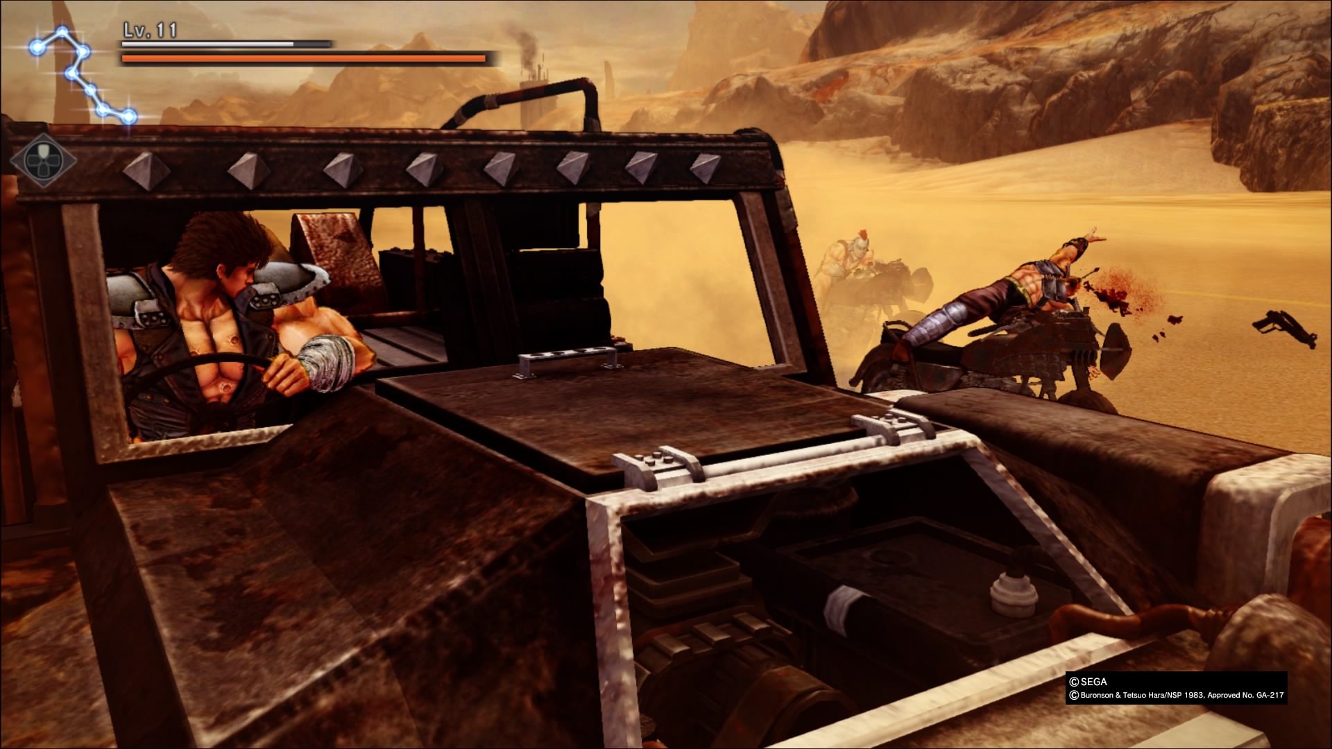 Należy również dodać, że po pewnym czasie otrzymujemy możliwość przemierzania pustkowi przy pomocy samochodu. Dawno nie widziałem pojazdu, który zachowuje się jak kostka masła na rozgrzanej patelni. Kiedy dochodzi do używania hamulca ręcznego to bez problemu można robić bączki jak szalony. Oczywiście nie jest to aż tak duża wada, jednak dla ludzi lubujących się w grach wyścigowych może być to przeszkoda nie do przeskoczenia. Należy wspomnieć też o obecności minigier. Jak to bywa z tymi twórcami, możemy grać w baseball przy pomocy przeciwników i wielkiego metalowego pręta (tak, dobrze czytacie) czy bawić się w barmana. Tutaj nie mam większych uwag, ponieważ jest to poziom do którego studio zdążyło nas przyzwyczaić.