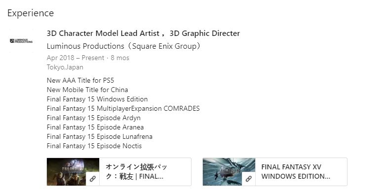 News pochodzi z profilu LinkedIn Tomohiro Tokoro, projektanta modeli 3D w studiu Luminous Productions, które należy do grupy Square Enix.
