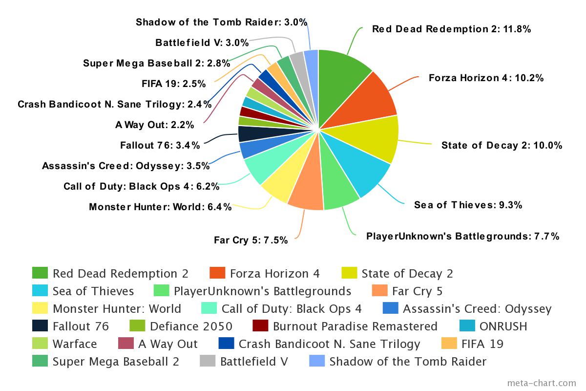 Statystyki te dotyczą tylko użytkowników True Achievement, a oparte są one na ilości zarejestrowanych graczy w serwisie, którzy rozpoczęli konkretną grę. Jest to dość zawężona społeczność, jednak chyba wystarczająca, by choć trochę pokazać, w co grało się w 2018 na Xboksie.