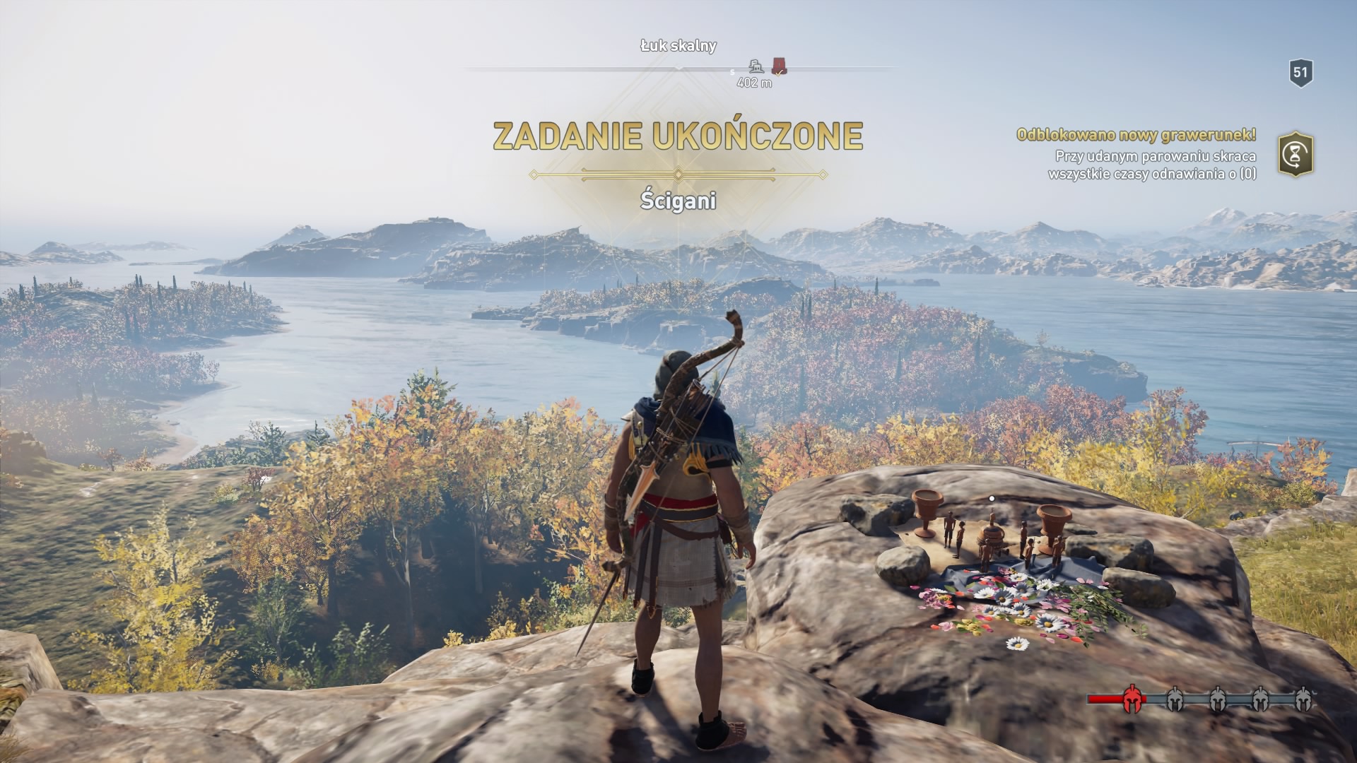 Powracają także swojego rodzaju Czciciele. Tym razem są oni zwani Zakonem Starożytnych, ale oprócz tego nie mają właściwie żadnych różnic względem pierwotnych Kultystów. Jak wcześniej nadmieniłem, misje, jakie wykonuje nasz Alexios lub nasza Kassandra są bliźniaczo podobne do tych, do jakich przyzwyczaiła nas podstawowa wersja Assassin’s Creed: Odyssey. Nadal będziemy podejmować decyzję, po czyjej stronie stanąć i przekradać się w twierdzach lub przypuszczać frontalny atak. Towarzysząca misjom fabuła jest na tyle ciekawa, że wciąga o dziwo bardziej niż poznawanie przeszłości Dariusza. Złapałem się na tym, że – mimo prostoty – drobne historie sprawiały, że poświęcałem Dziedzictwu Ukrytego Ostrza swój czas z niekłamaną przyjemnością. Tym większa szkoda, że nie był on długi – na ukończenie Ściganych wystarczą 2 godziny. Możemy oczywiście wydłużyć tę wartość, wykonując zadania poboczne i polując na członków Zakonu Starożytnych, jednakże osiągnięcie 100% w dodatku nie powinno zająć więcej niż około 6 godzin.