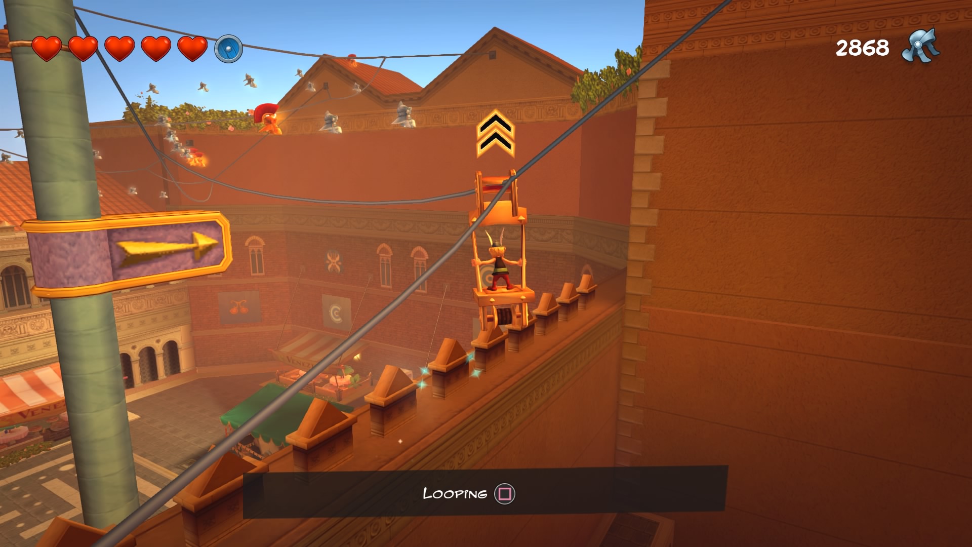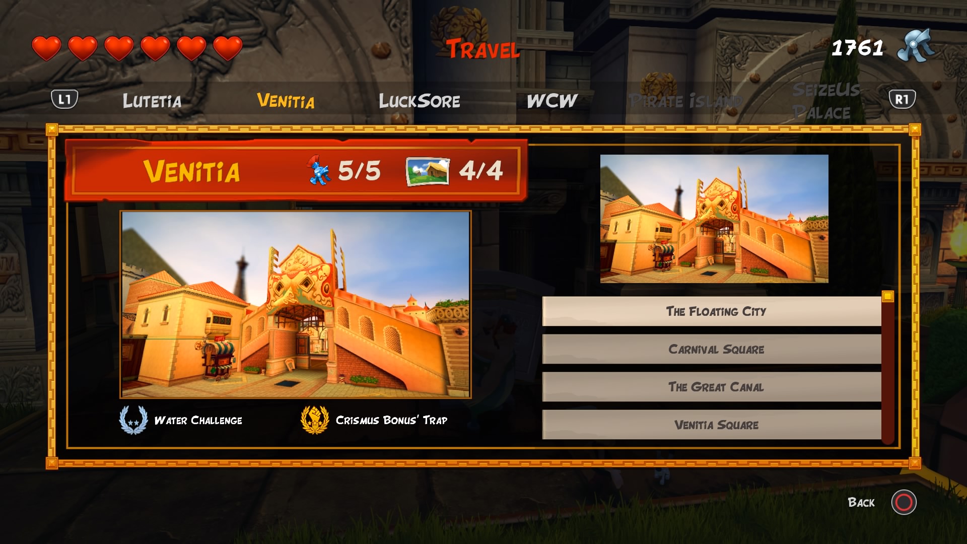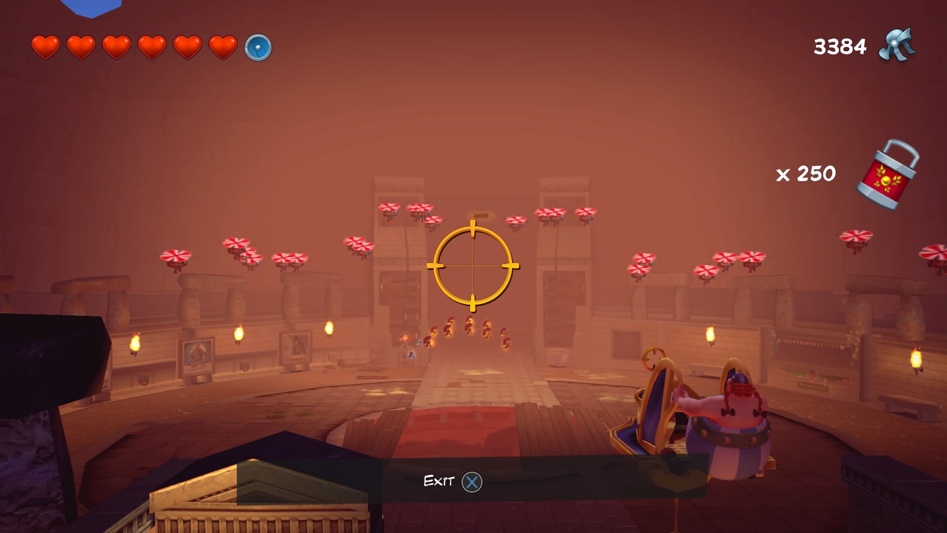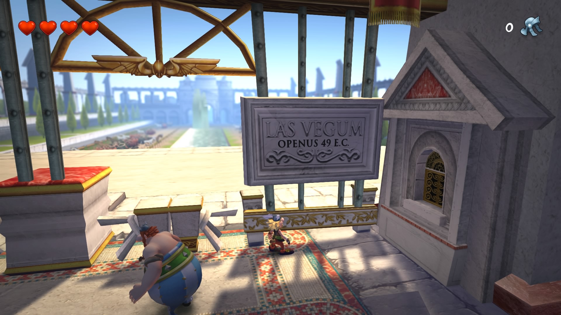 Nie bez powodu wspomniałem o hełmach. Służą one bowiem za walutę. Po dostaniu się do budki-sklepu możemy wydać je na rozwinięcia umiejętności naszych Galów (czy to pasywne, jak większa ilość zdrowia, czy aktywne, jak lepsze lub mocniejsze ciosy kombinacyjne), ale nie tylko. Możemy również kupić uzupełnienie zdrowia (za pomocą udziec dzika, które można znaleźć też w Las Vegum) lub zapewnienie dodatkowej osłony (co także możemy samemu znaleźć – wystarczy podnieść żeton z tarczą). Kolekcjonerów z pewnością ucieszy możliwość zakupienia figurek postaci, z jakimi mieliśmy do czynienia. Należą do nich zarówno żołnierze, jak i bohaterowie znani z kart komiksów. Mimo że możemy je oglądać jedynie w specjalnej zakładce w menu (nie ma chociażby gablotek wystawowych), to i tak doskonale bawiłem się wykupując je w sklepie i szybko stały się pierwszym, na co wydawałem hełmy.