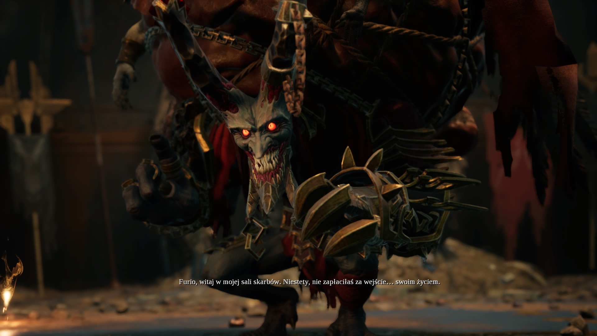 Co do udźwiękowienia, to mam mieszane uczucia. Z jednej strony polski dubbing jest całkiem przyzwoity (do tego stopnia, że ja, zagorzały przeciwnik polskich głosów w filmach i grach dobrze bawiłem się, słuchając go w Darksiders III). Czegoś jednak mu brakuje. Czasem miałem wrażenie, że aktorzy nadinterpretują tekst, przez co niektóre kwestie brzmiały wręcz groteskowo. Nie mogę nie wspomnieć też o pewnym problemie lokalizacyjnym. To, co słyszymy bardzo często różni się od tego, co jest napisane. Załóżmy, że Furia pyta: „Myślisz, że to mnie powstrzyma?”. Jednocześnie widzimy podpis: „Czy ty uważasz, że ta marna próba mnie zatrzyma?“. Niby nie jest to wielka zmiana, ale sprawia, że nie można komfortowo śledzić jednocześnie testów i napisów. Ja zdecydowałem się na postawienie na dubbing. Muszę też wspomnieć o braku tłumaczenia w jednej linii dialogowej. O ile polscy aktorzy przeczytali tekst w naszym języku, o tyle na ekranie widzimy angielski podpis.
