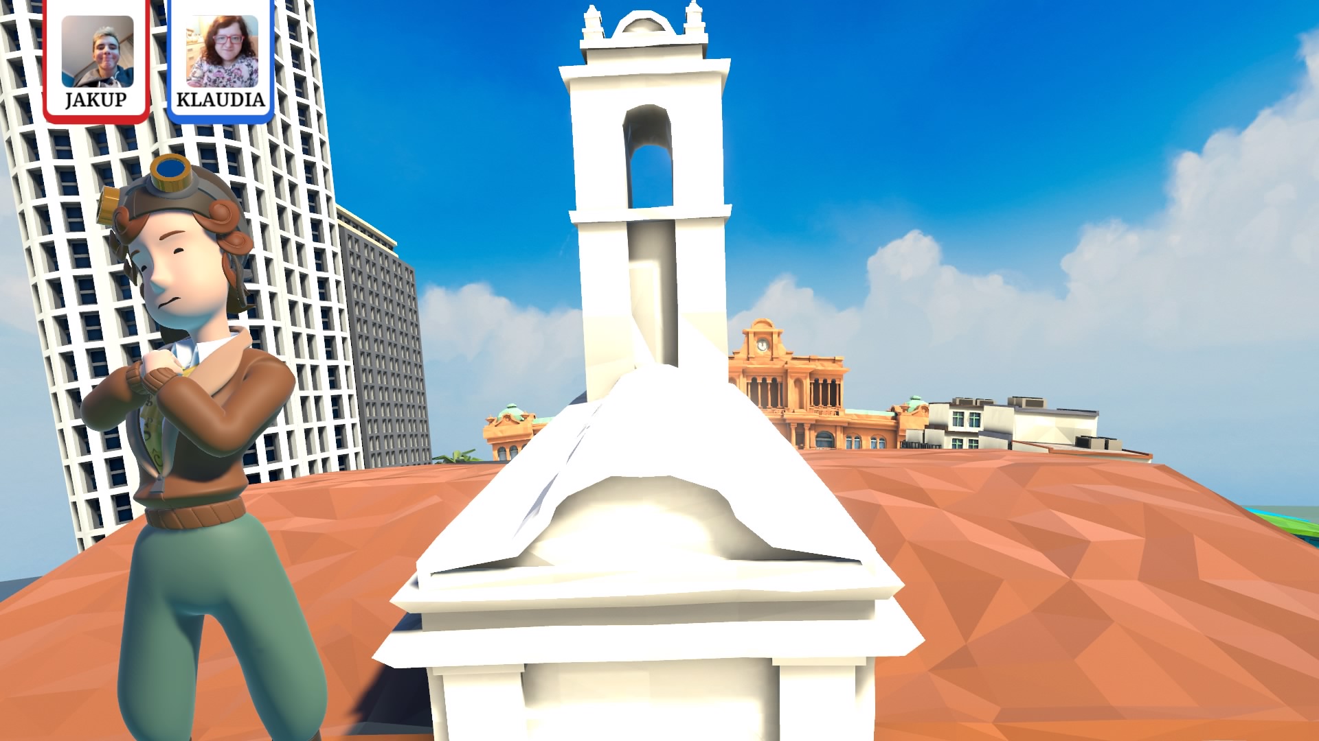 Moskwa, Londyn, Warszawa, Florencja, w Wordhunters zwiedziłam prawie cały świat! Podczas mojej podróży mogłam zobaczyć znane budowle czy ulice, które w grze prezentują się cudownie. Całość oczywiście jest zminiaturyzowana, ale zrobiono to w bardzo fajny sposób, dzięki któremu od razu wiemy, gdzie wylądowaliśmy. Big Ben, Dawid Michała Anioła czy Cerkiew Wasyla Błogosławionego w takiej bajkowej formie wyglądają niezwykle uroczo. Nie mam też nic do zarzucenia oprawie audio. W tle grała wesoła muzyka, która w żadnym stopniu nam nie przeszkadzała i całkiem dobrze zgrywała się z tym co dzieje się na ekranie. Na plus zasługuje również dubbing prowadzącej.