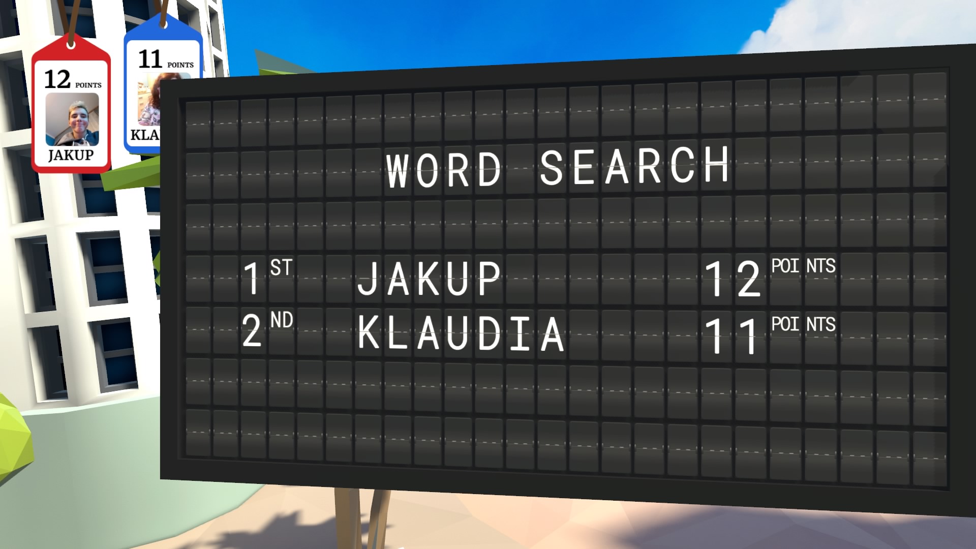 Piętnaście minigier to całkiem sporo, ale co z tego, jeśli większość z nich jest oklepana? Twórcy przygotowali takie konkurencje jak typowe i każdemu znane wykreślanki, układanie słów z podanych literek (Scrabble) oraz określanie czy dane słowo jest napisane poprawnie czy też nie. Napewno nie jest to imprezowy zestaw minigier, ponieważ przyznam szczerze, że ciężko było mi znaleźć osobę, która chciała by pograć. I nie chodzi o to, że gra nie jest dostępna w języku polskim. Poziom trudności jest niski i raczej każdy kto miał styczność z angielskim sobie poradzi. Problem tkwi w tym, że Scrabble czy Wykreślanki nie są porywające, a podróże dookoła świata w tle nie sprawiają, że gra jest bardziej emocjonująca. Kolejnym minusem jest fakt, że udzielone przez nas odpowiedzi od razu wyświetlają się na ekranie. Przecież to jest kompletnie bez sensu i psuje zabawę. Musiałam czekać z udzieleniem odpowiedzi do końca czasu, żeby nikt ode mnie nie ściągnął.