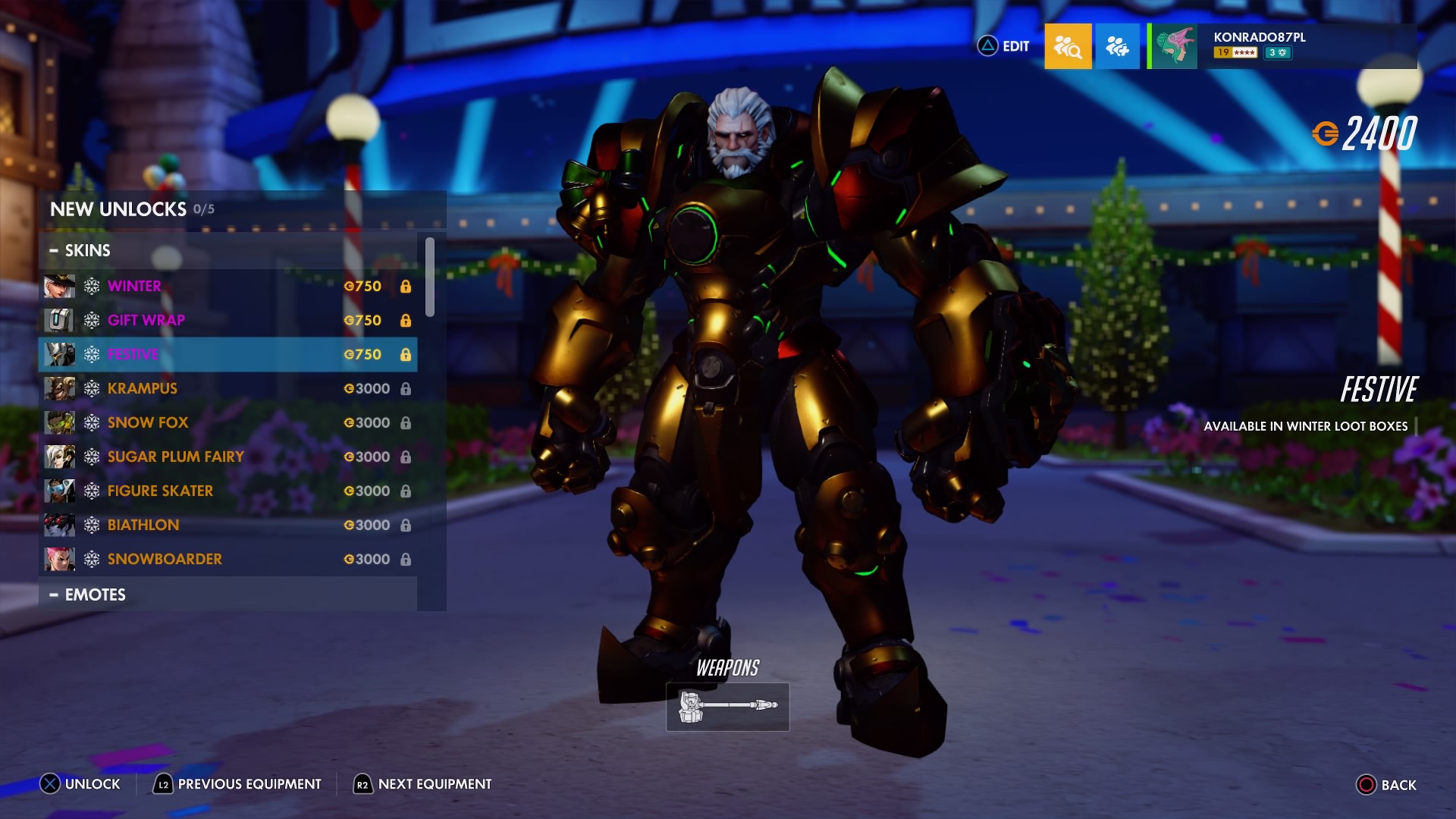 Możecie także kupić sprzęt zimowy z zeszłego roku za 1/3 kredytów. Przygotowano też trzy nowe epickie skórki: Prezent dla Bastiona, Odświętny dla Reinhardta oraz Zima dla Ashe – w komplecie z odpowiednio przystrojonym Bobem.