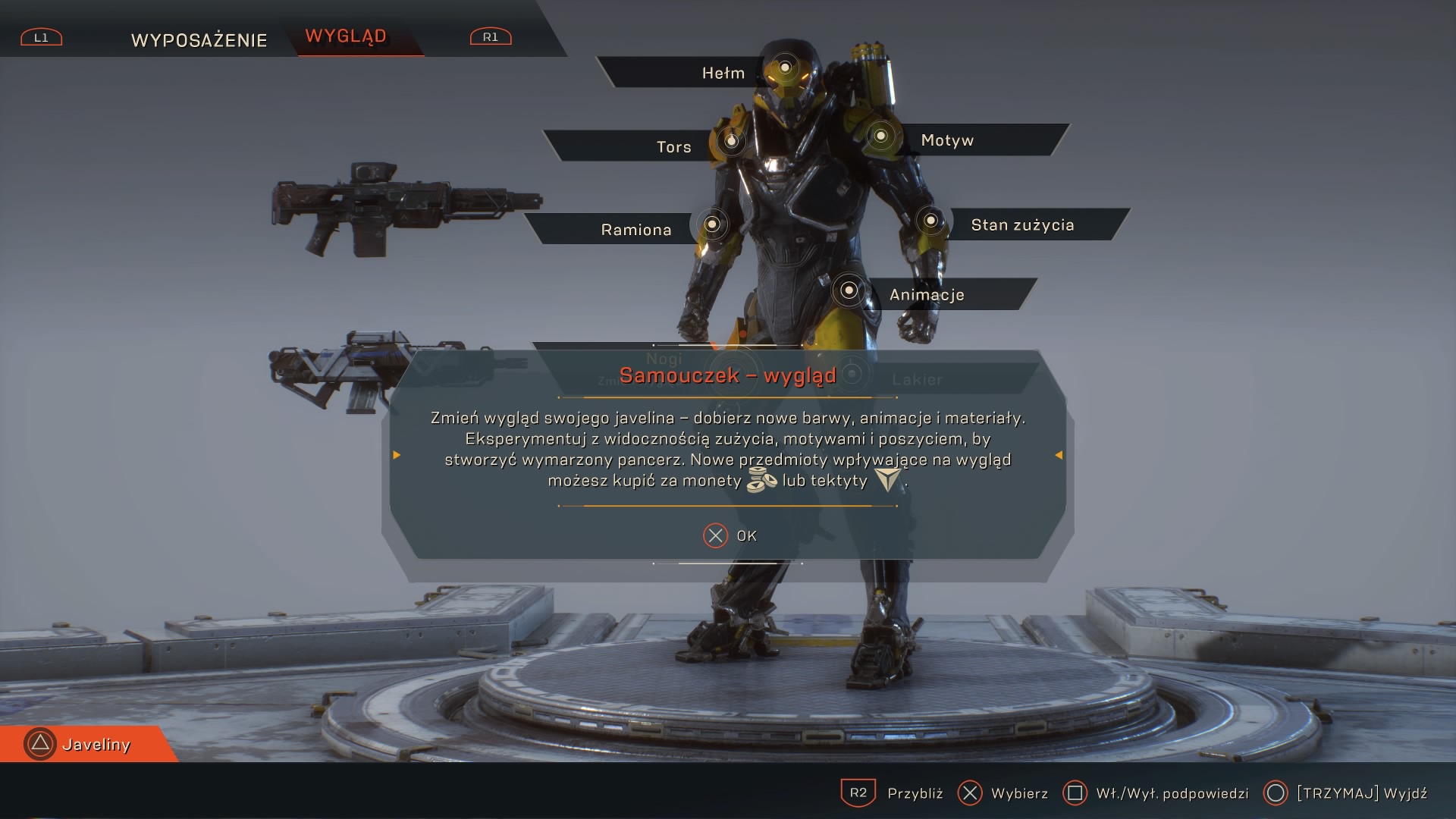 Każdy z javelinów charakteryzuje się innymi zdolnościami, które aktywujemy po L1 i R1. Dodatkowo w trakcie walk ładujemy superzdolność, którą możemy aktywować naciskając DPad w górę. Śmigacz bardzo przypomina Genjiego z Overwatch, jego ult to długa seria wielu cięć ostrzami, Kolos może wystrzelić trzy pociski o ogromnej sile rażenia, a Łowca całą serię rakiet, które trafiają w automatycznie namierzone cele. Niestety javelina nie możemy zmieniać podczas misji. W kuźni za to możemy sobie stworzyć kilka bulidów jednej klasy, tak, aby być przygotowanym na każdą okazję