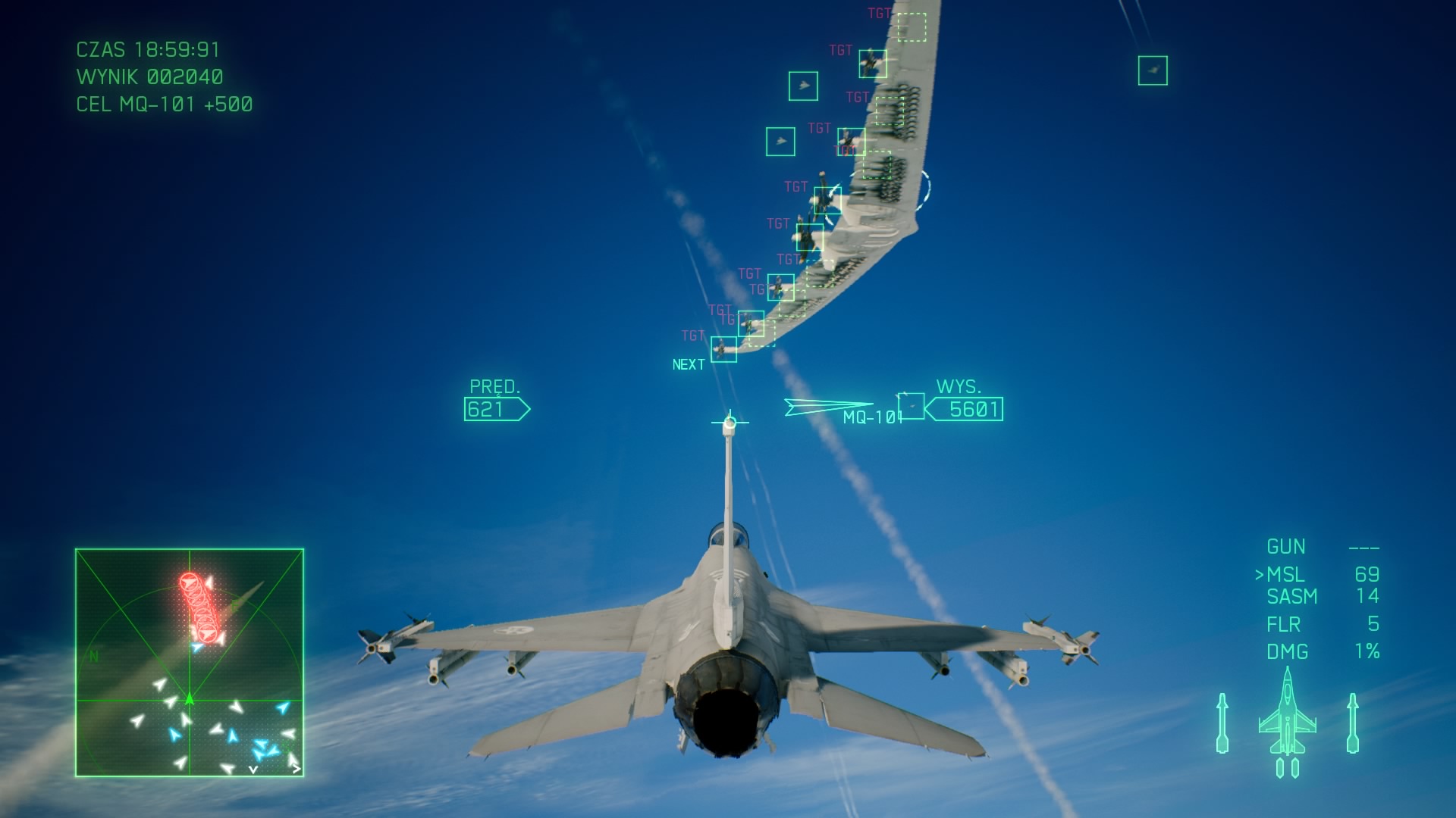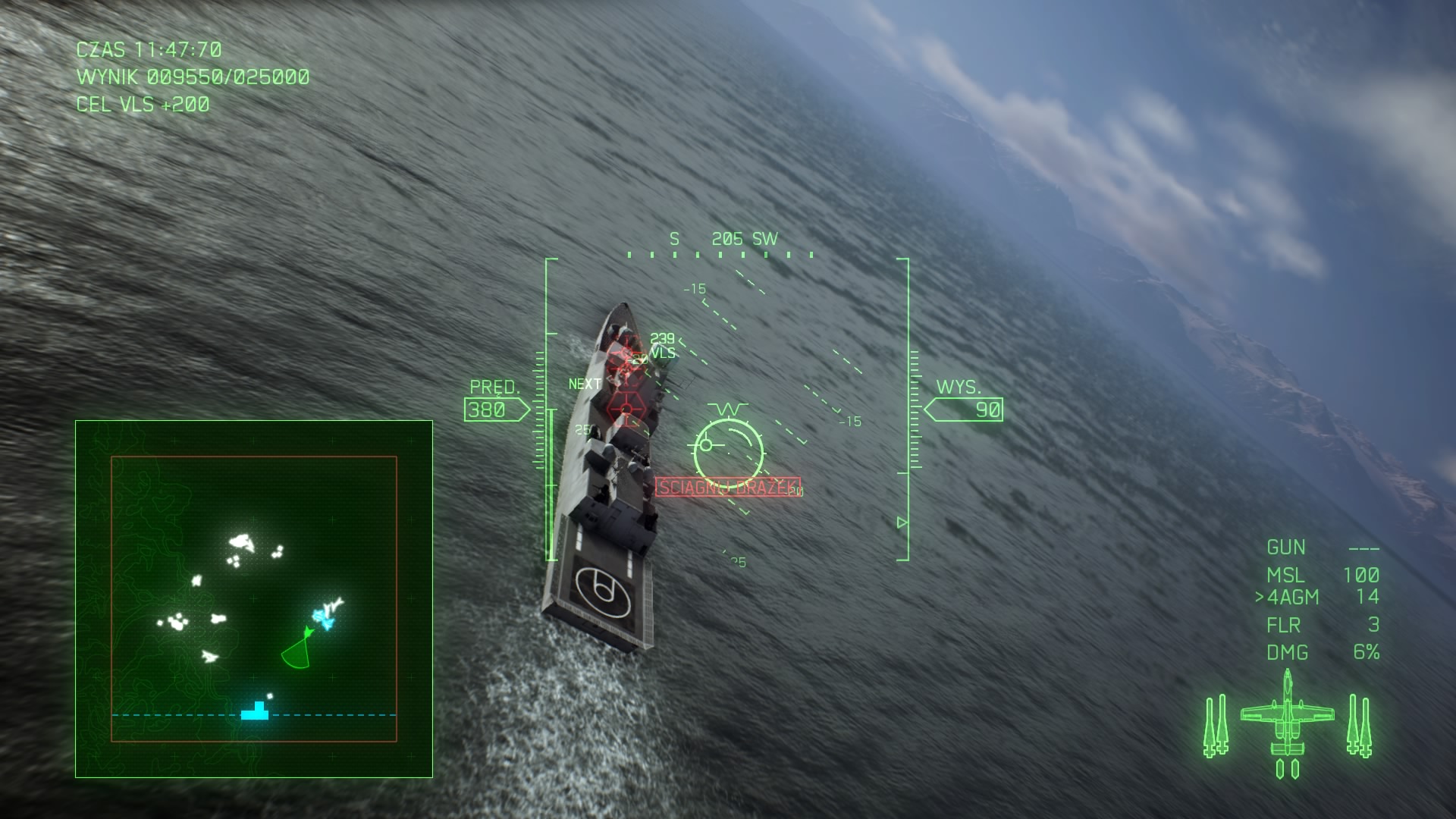 Zanim jednak przejdę do samolotów, to słów kilka o misjach w fabule, bo zostały one mocno urozmaicone. Naszym zadaniem nie będzie tylko eliminowanie kolejnych samolotów, czy helikopterów, ale sporą cześć stanową walki z bezzałogowymi dronami, które są bardzo szybkie i niczym snajper czekający pół dnia na oddany strzał, tak i my musimy odpowiednio się ustawić i wyczekać odpowiedni moment do zestrzelenia drona. W wielu misjach będziemy mieli do zniszczenia całe armie wojsk lądowych, jak działa przeciwlotnicze, czołgi, czy ciężarówki z rakietami a nawet okręty wodne, jak pancerniki, czy lotniskowce.