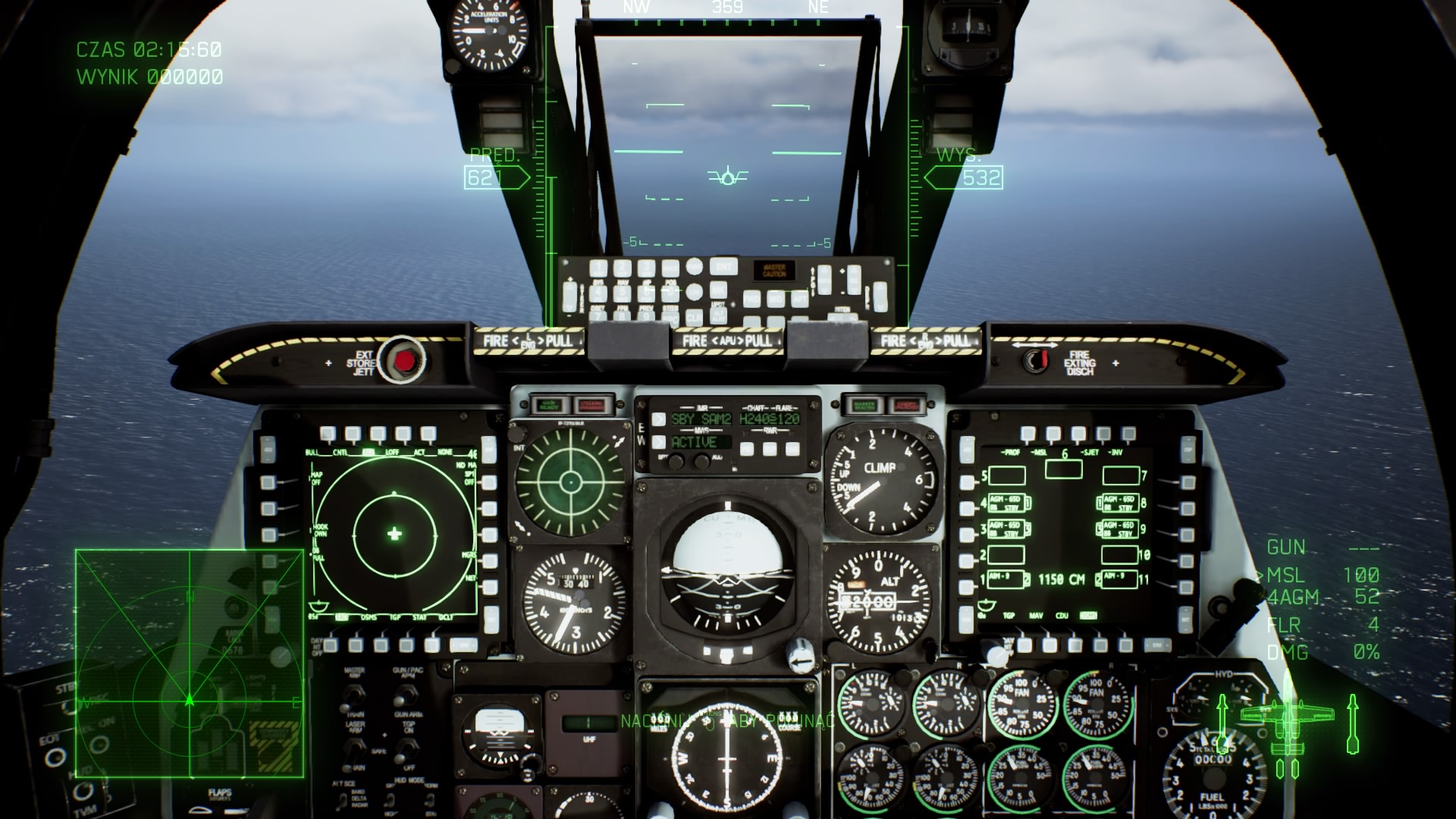 Samoloty zostały podzielone na trzy kategorię: myśliwskie, wielozadaniowe oraz szturmowe. W środ nich znajdziemy wiele popularnych modeli produkcji amerykańskich, rosyjskich i europejskich, jak F-15E Strike Eagle, F-22A, Mirage 2000-5, Rafaele M, Typhoon, czy nawet nowoczesny Su-57. Natomiast Boening F/A 18F Super Hornet, to wyjątkowy uniwersalny myśliwiec, którym możemy wykonać trze misje na PlayStation VR. Nie brakuje tez klasyków w stylu amerykańskiego Fairchilda A-10C z lat siedemdziesiątych, który jest samolotem szturmowy bliskiego wsparcia, idealnie nadaje się do niszczenia dużej liczby celów naziemnych, czy Mig29A – rosyjska jaskółka z 1977 roku. Każdy samolot ma fantastycznie odwzorowany kokpit, po którym możemy się rozglądać prawy analogiem. Jest jeszcze widok FPP, na którym widzimy tylko sam celownik, prędkościomierz oraz wysokościomierz.