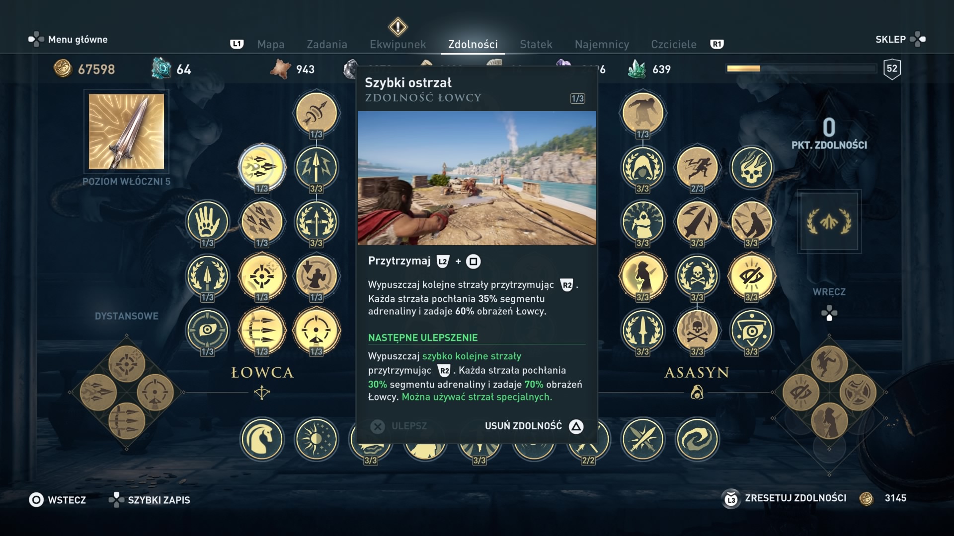Nowy dodatek to także nowa umiejętność specjalna. Tym razem jest nią Szybki Ostrzał, dzięki któremu możemy zamienić swój łuk w coś na kształt karabinu maszynowego. Po wykupieniu tej umiejętności za 1 punkt rozwoju postaci i aktywowaniu zdolności szyjemy z łuku jak z automatu. Przytrzymujemy przycisk ataku, a Alexios raz za razem nakłada strzały na cięciwę i szyje nimi w przeciwników aż nie przestaniemy lub nie skończy się pasek koncentracji. Umiejętność ta wykorzystuje bowiem jedynie wspomniany pasek, a nie strzały. Jest to co prawda bardzo mało wiarygodne, ale za to ogromnie satysfakcjonujące i widowiskowe.