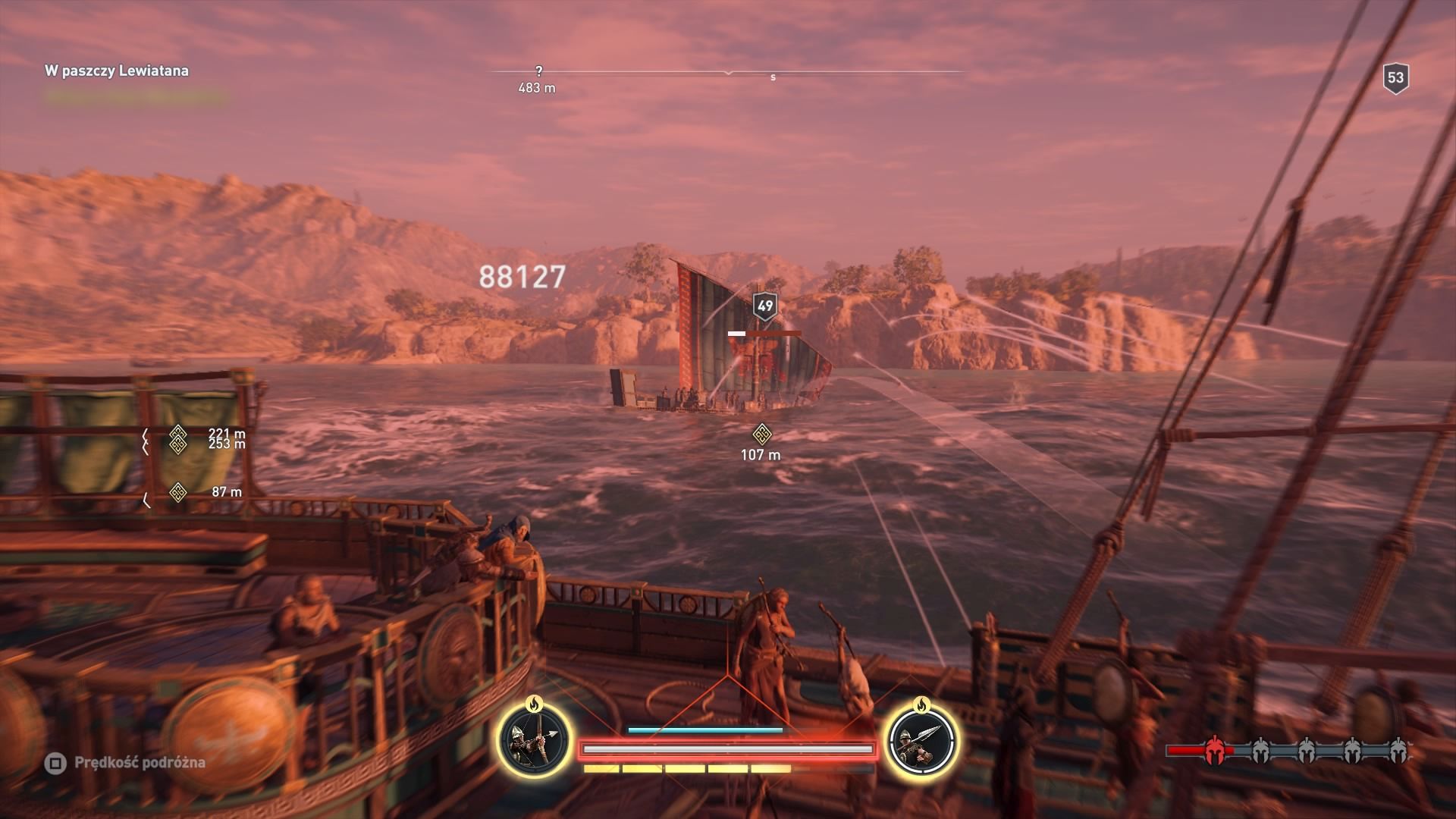 Nowością jest także dodatkowy element wyposażenia okrętu. Po wykonaniu pewnej misji fabularnej Adrestia dostanie swojego rodzaju działko ogniste. Dzięki niemu będziemy mogli palić okręty przeciwników, co często się przyda w bataliach morskich. Działko to możemy rozwijać, zwiększając zadawane nim obrażenia i zmniejszając okres oczekiwania na odnowienie możliwości korzystania z niego. Nie jest to nic, co zmienia diametralnie podejście do bitew okrętów, ale zapewnia nam dodatkową opcję pozbywania się oponentów. I oczywiście zapewnia całkiem niezłe wrażenia wizualne, przywodzące nieraz na myśl flotę Stannisa z sagi Pieśni Lodu i Ognia.