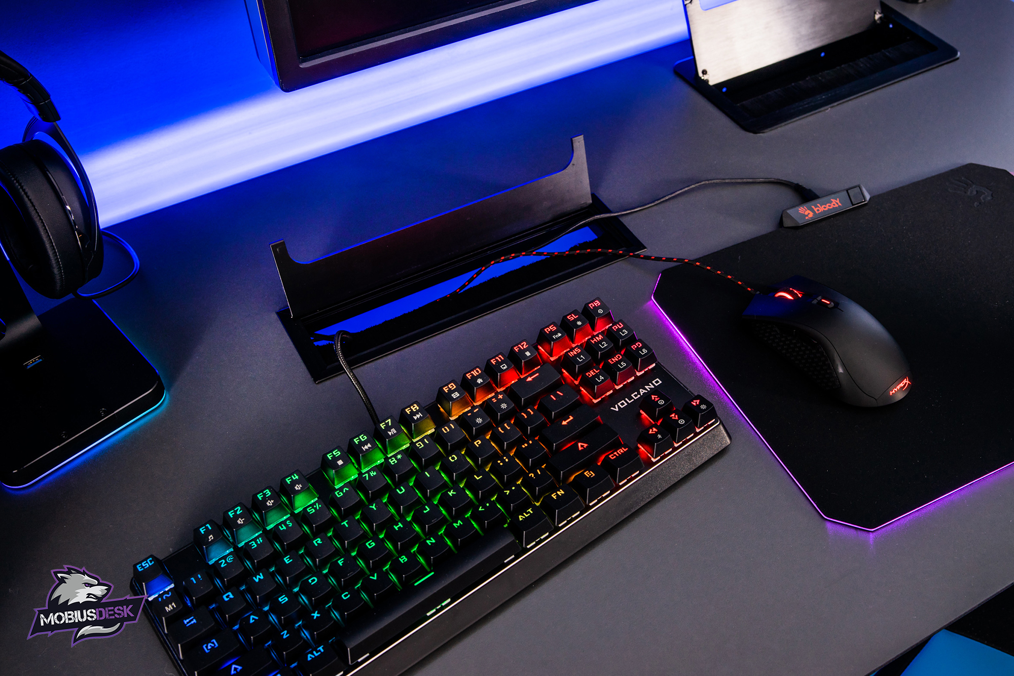 Zawsze można również zwiększyć funkcjonalność swojego biurka dla gracza poprzez różnego rodzaju elementy dodatkowe. W ofercie Mobiusdesk nie brakuje rozwiązań, które ułatwiają graczom codzienne życie. Są to np. gniazdka z opcją zasilania sprzętu, ładowarką do smartfona czy gniazda sieciowego. Nie mniej ciekawym rozwiązaniem są przepusty uporządkowujące okablowanie, które pozwalają na poprowadzenie przewodów pod blatem. Dużą popularnością cieszą się też biurka z oświetleniem LED, które idealnie nadaje się do grania czy pracy. Do tego wybrać można spośród kilkunastu kolorów i trybów świecenia. Możliwości jest więc całkiem sporo. Oświetlenie LED biurka wpływa korzystnie na nasz wzrok co pozwala wieczorem wygodnie pracować lub odrabiać lekcje.