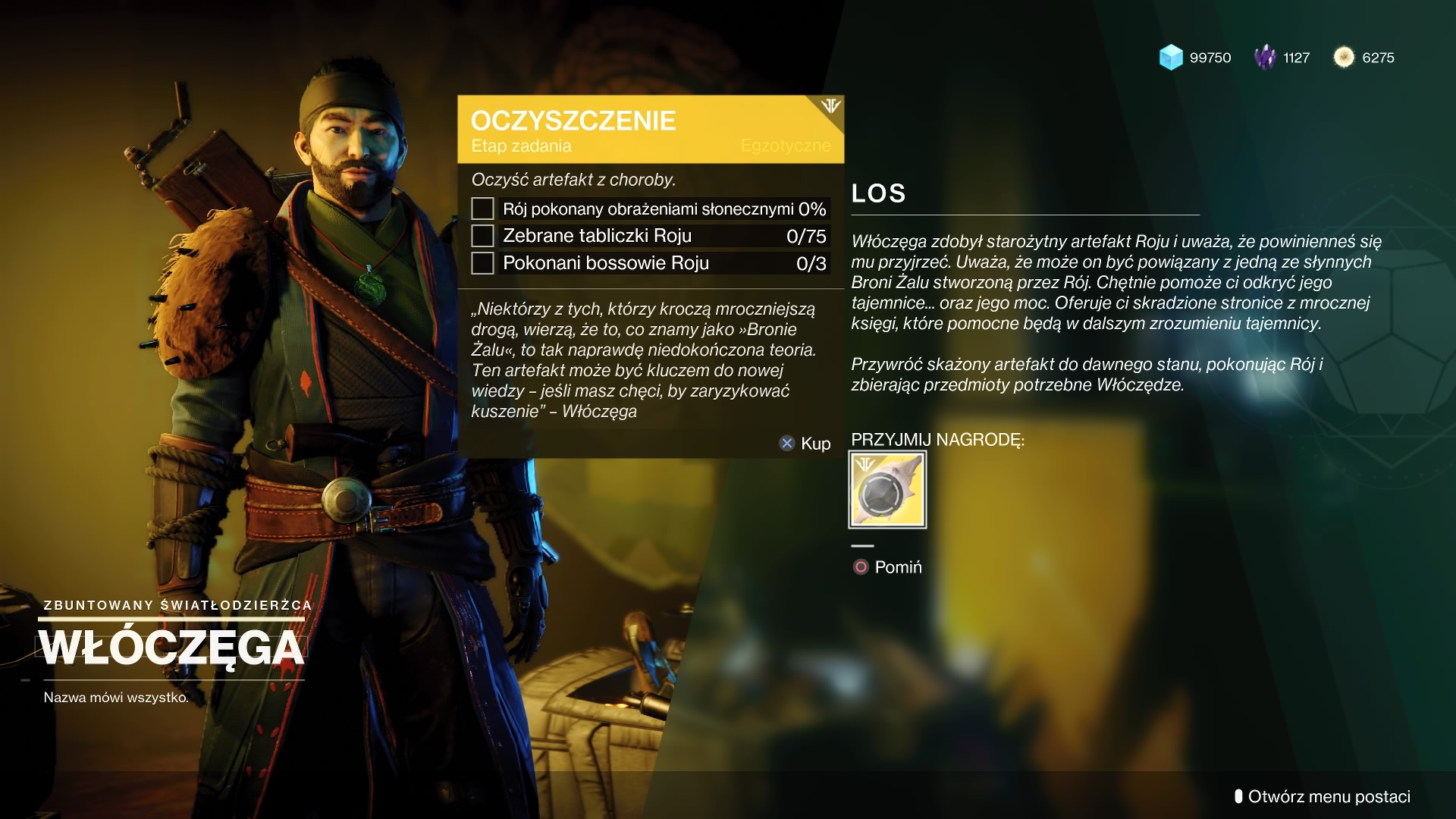 Nic trudnego po prostu zabijacie moby z Roju za pomocą broni, które zadają obrażenia słoneczne. Broń dowolna, po prostu wybierzecie to, z czego wam się najlepiej strzela. Tabliczki będę wypadać randomowo, ale dosyć często z pokonanych mobów Roju. Natomiast trzech bossów Roju najłatwiej jest pokonać w ukrytym sektorze “Terminal Rdzenia” w północno-zachodniej części Marsa. Śmiało możecie trzy razy zabić tego samego bossa, przy trzecim ukończeniu utraconego sektora wszystkie zadania powinniście mieć już spełnione. Wracacie do Włóczęgi na Wieżę.