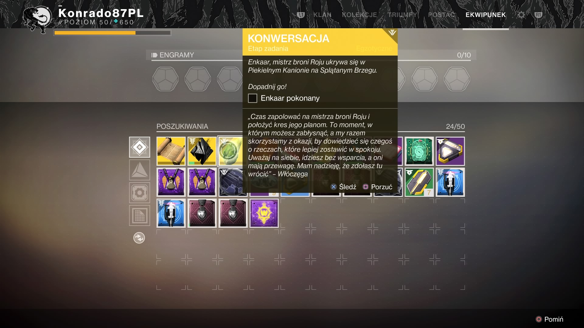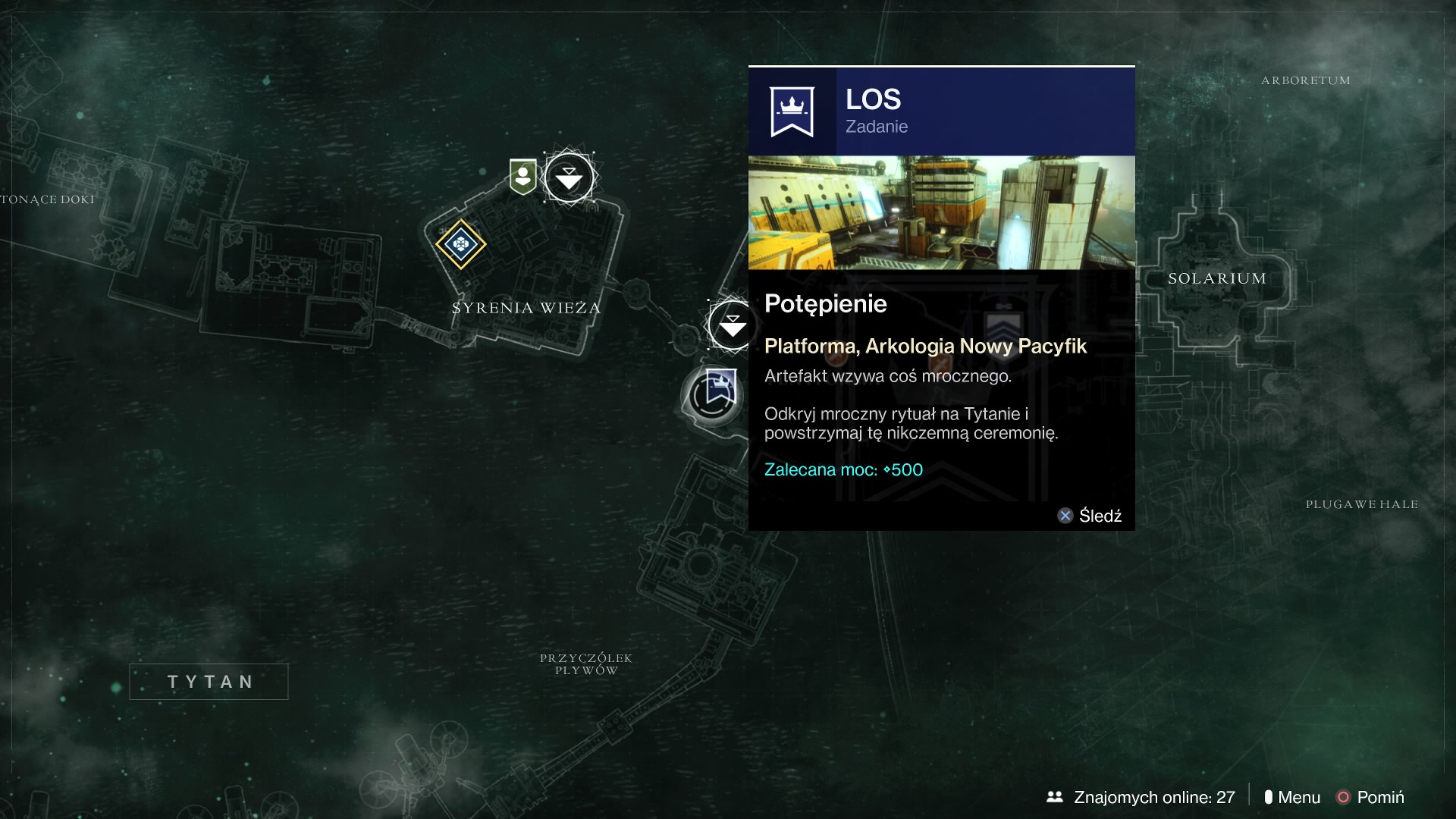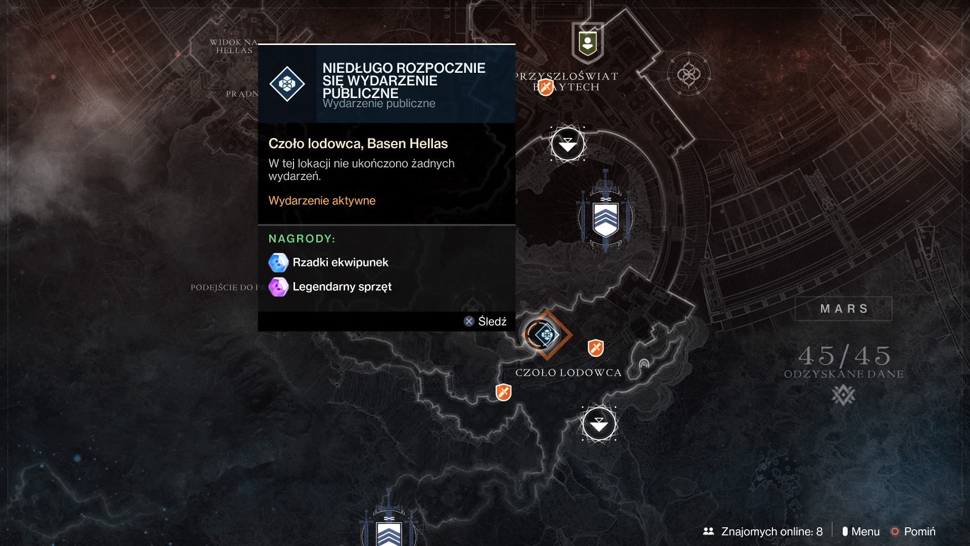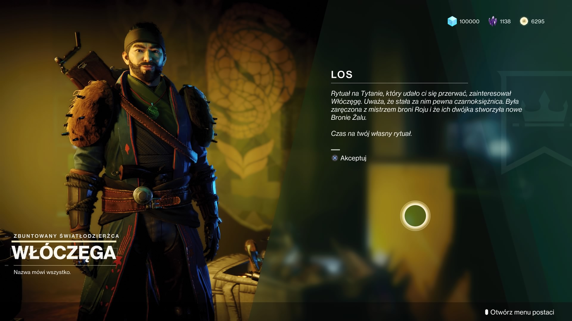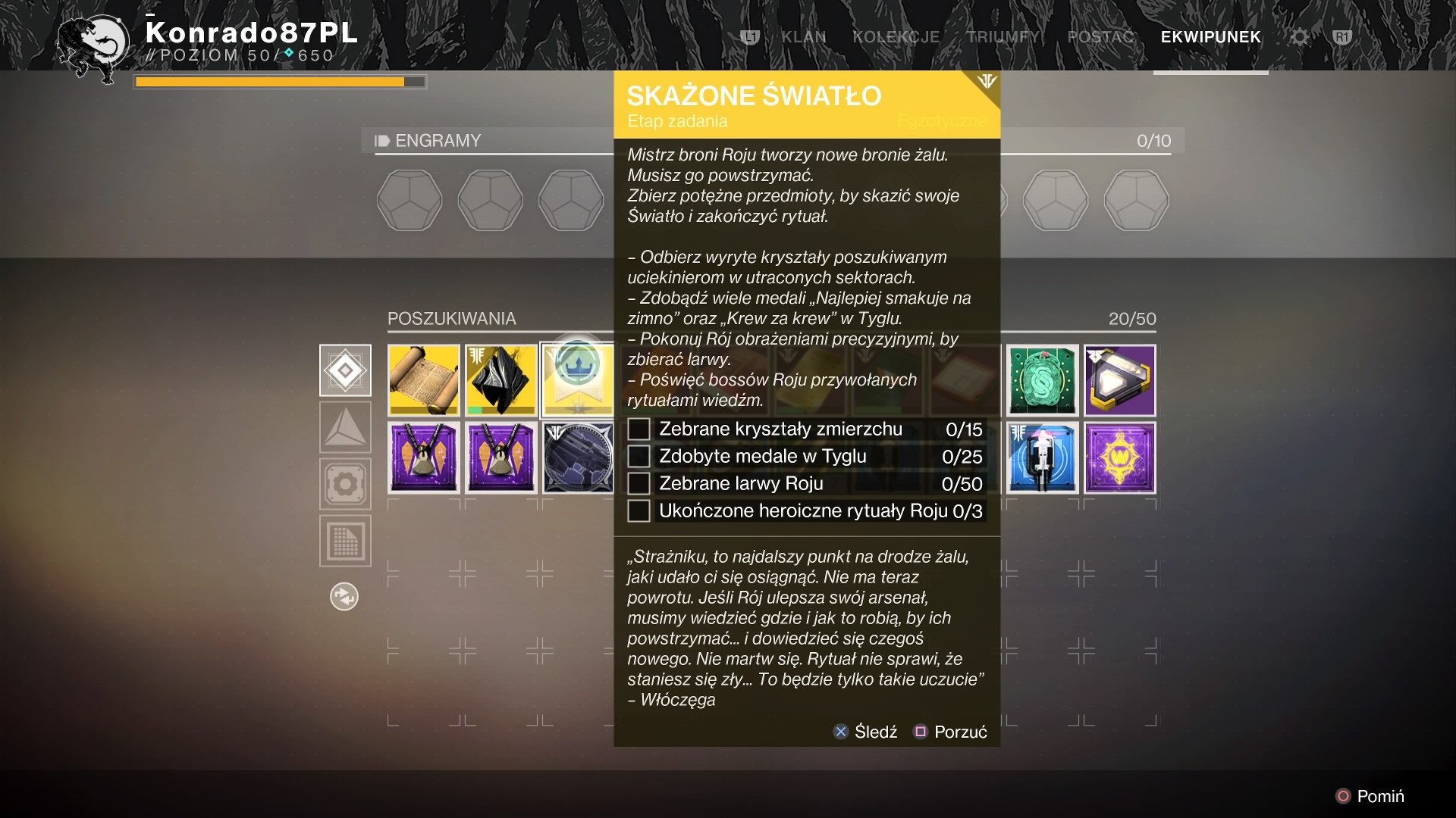 Ostatnią częścią tego etapu jest ukończenie trzech wydarzeń publicznych “Rytuał Roju” na poziomie heroicznym. Wydarzenie to pojawia się tylko w południowej części Marsa na Czole Lodowca oraz na Tytanie w lokacji Platforma. To bardzo proste wydarzeniu publiczne, które śmiało ukończycie nawet solo. Pojawią się dwa duże okręgi, stajecie na jednym i po chwili zabijacie wiedźmę, przechodzicie na drugi i zabijacie drugą wiedźmę. Stojąc dalej na okręgu niszczycie kryształ, teraz szybko przebiegacie na drugi okrąg i niszczycie drugi kryształ. Pojawi się boss, po jego zabiciu wydarzenie heroiczne zostanie zakończone. Po wypełnieniu wszystkich czterech zadań wracacie do Włóczęgi na Wieżę.