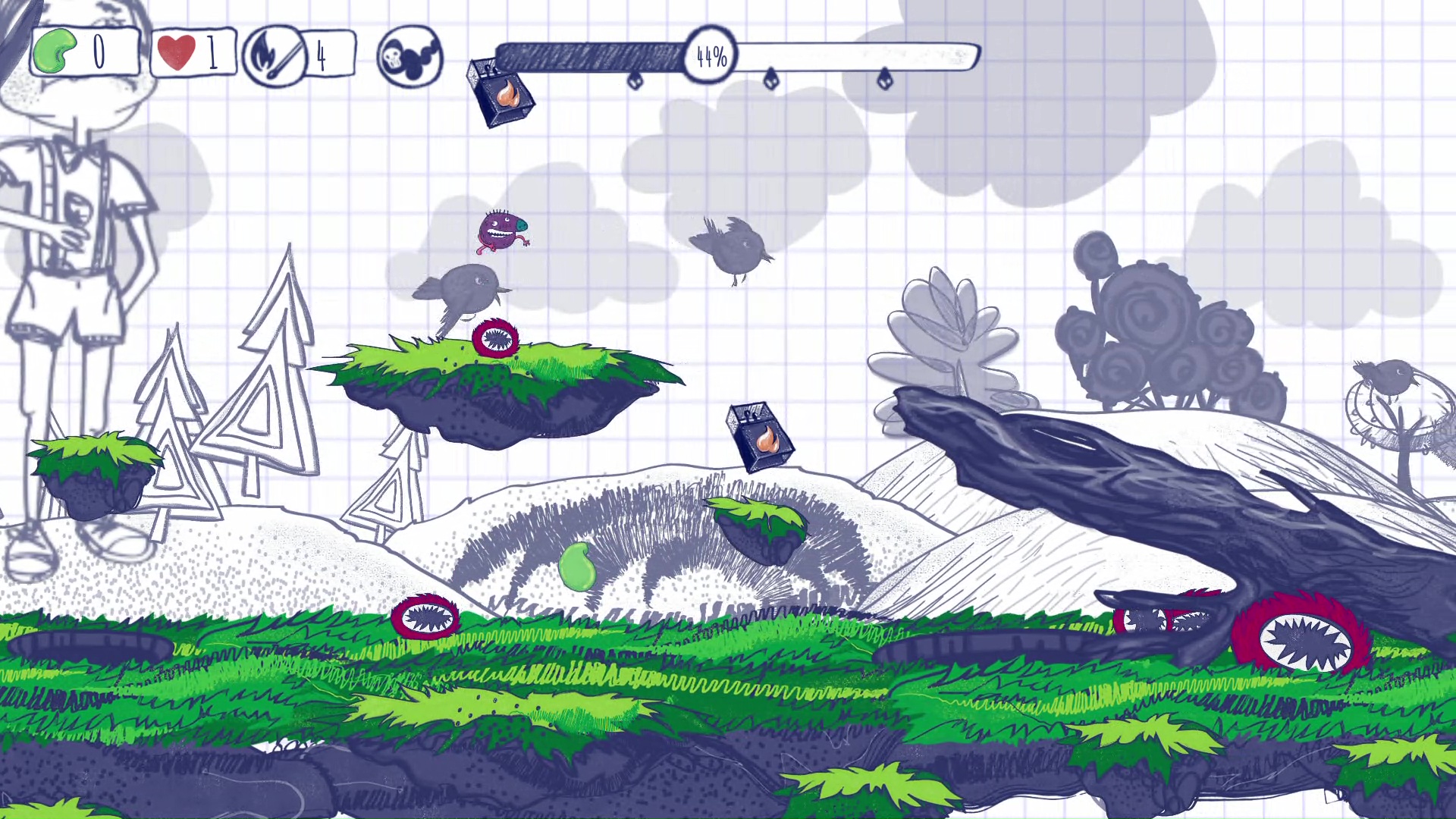 Wyruszamy więc w podróż przez 10 kolejnych etapów, stale uciekając przed ogromnym stworem. Postać automatycznie biegnie w prawo, a naszym zadaniem jest jedynie omijanie przeszkód. Większość z nich da się najzwyczajniej przeskoczyć, czasem jednak przydaje się umiejętność kierowanego przez nas bohatera. Wykorzystując zebrane po drodze zapałki potrafi on podpalać pierdy, co pozwala na wyskoczenie wyżej w górę, odskoczenie do przodu uciekając trochę dalej potworowi, bądź też możemy Omnibusa chwilowo spowolnić.