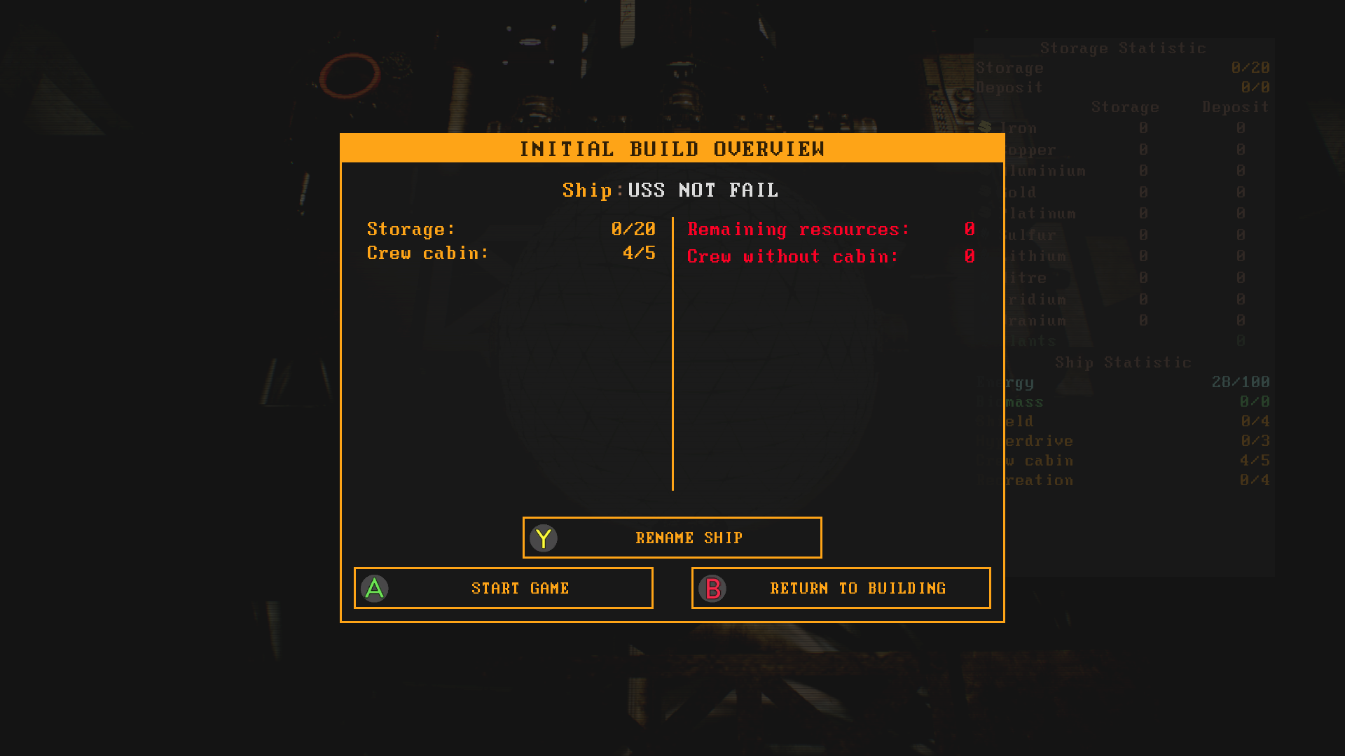 Budowę statku rozpoczynamy zawsze w tym samym miejscu – od kokpitu. Co bardzo fajne, kokpit zmienia się wraz z wybranym sponsorem. To jak jego układ będzie wyglądał zależy już od nas. Musimy tylko spełnić pięć podstawowych wymagań. Statek możemy rozbudowywać zarówno w poziomie jak i pionie. Wszystkie moduły są podzielone na kilka kategorii. Zasobów mamy mniej niż dostępnych komponentów więc trzeba się dobrze zastanowić nad tym z czym rozpoczniemy naszą podróż.