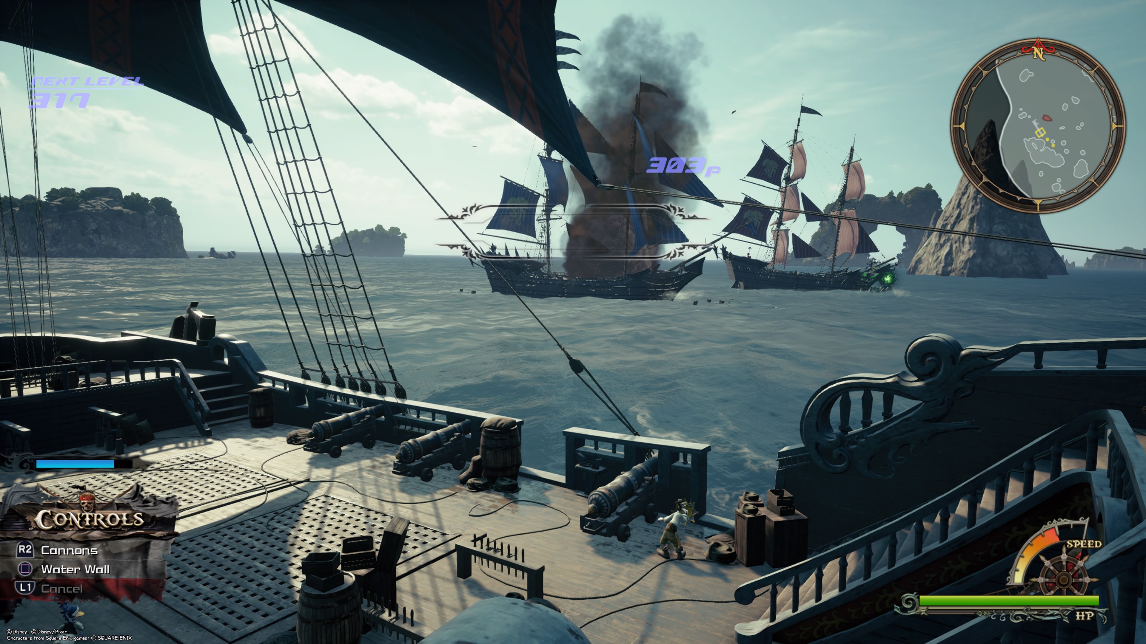 Niestety w grze powraca system latania statkami Gummi pomiędzy światami. Nie ukrywam, że nigdy nie był to mój ulubiony aspekt serii i trzecia odsłona niewiele zmienia w tej materii. Niestety nie da się tych fragmentów pominąć. Przy pierwszym odwiedzeniu danej lokacji musimy się do niej dostać statkiem. Tym razem zamiast korytarzowego kosmicznego shootera mamy otwarty wszechświat po którym możemy dowolnie latać, zbierać fanty i walczyć z przeciwnikami.