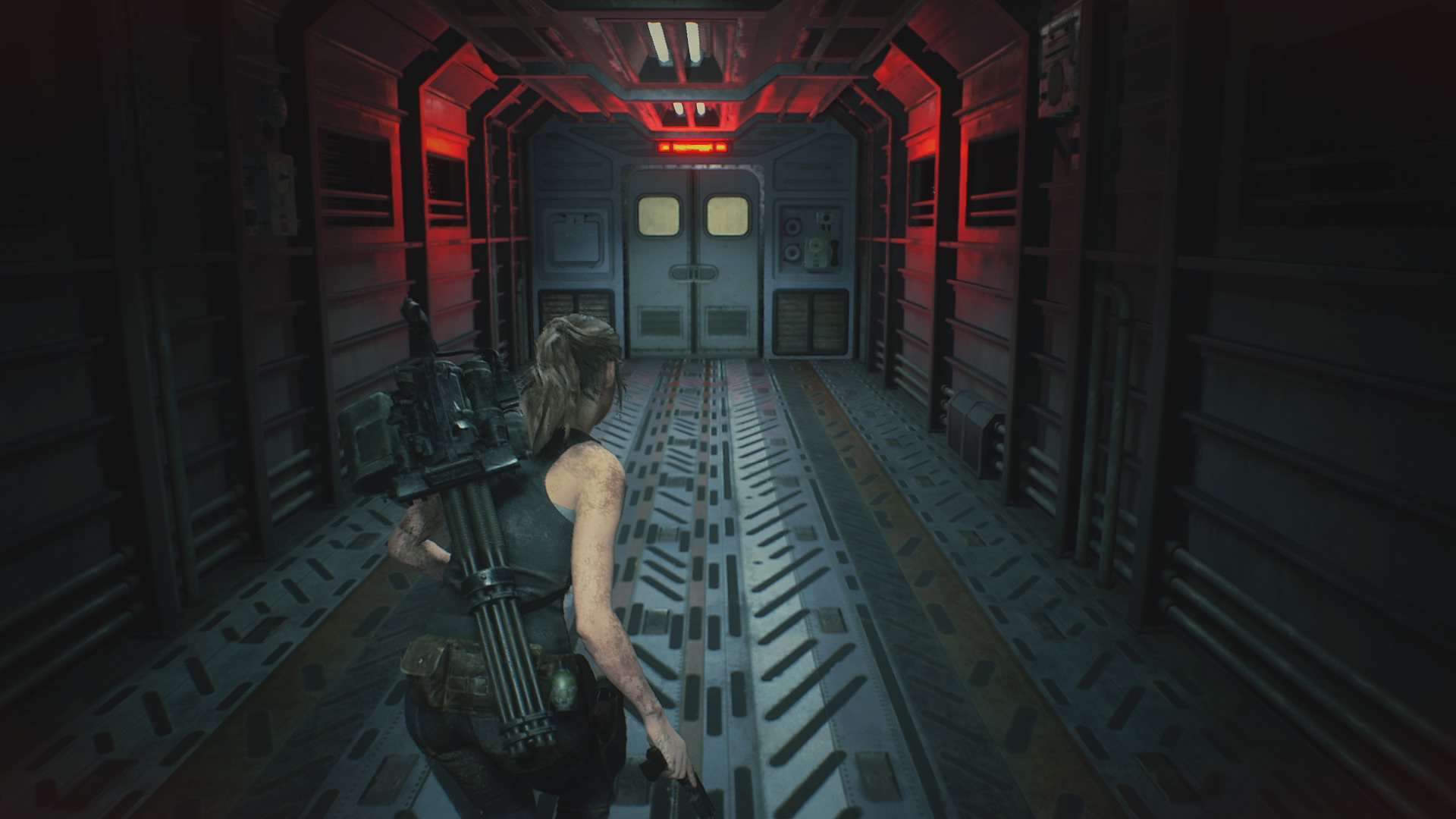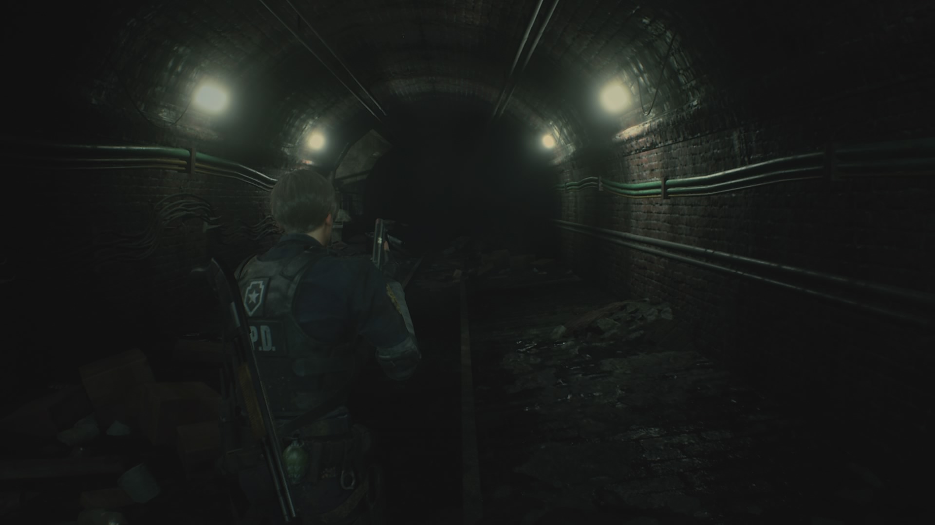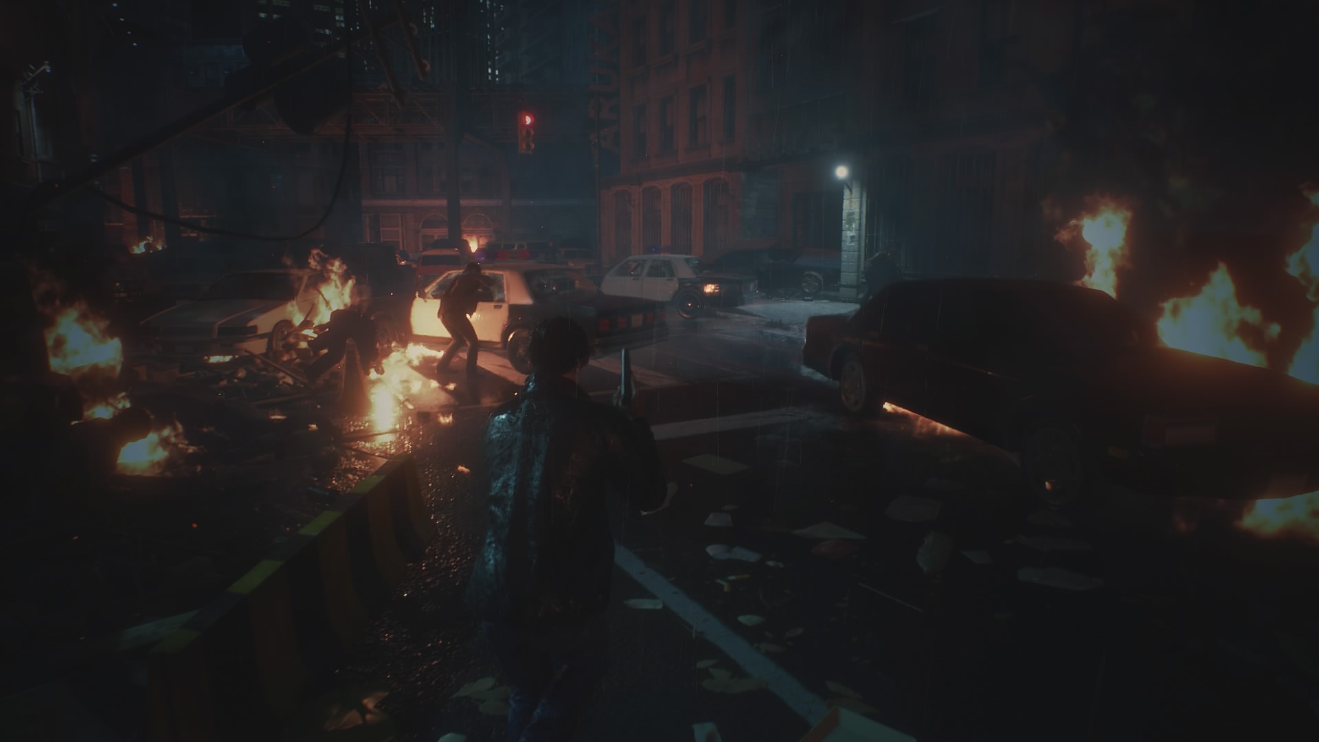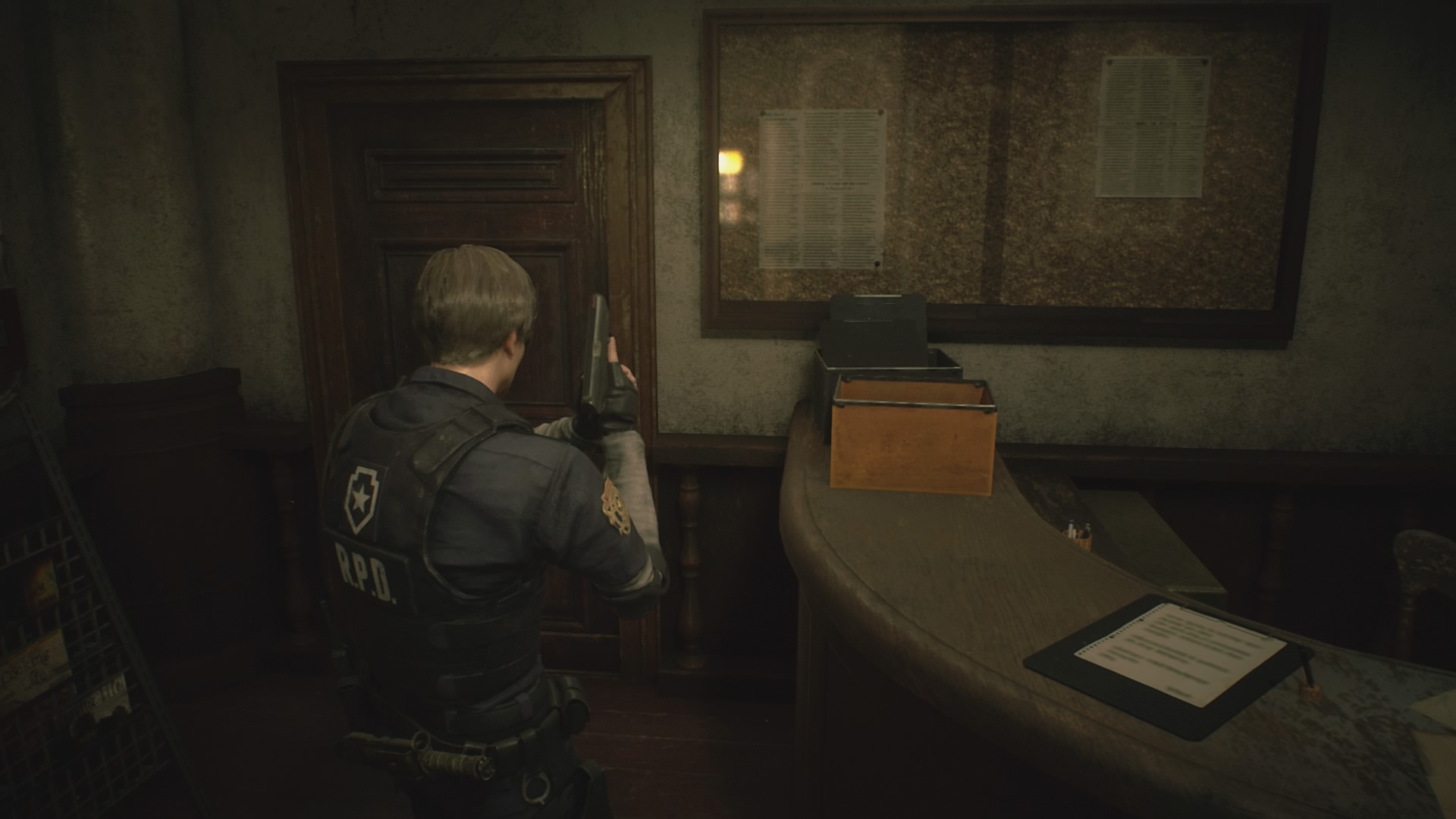 Jeśli myślicie jednak, że przemierzanie posterunku będzie w miarę przyjemne, przez fakt posiadania uzbrojenia to jesteście w błędzie. Na normalnym poziomie trudności żywe trupy są czasami niczym gąbki na pociski, a gdy w pobliżu pojawia się Licker, to najlepiej obrać przeciwny kierunek lub starać się przemknąć koło tych przyjemniaczków po cichu. Niestety to też może być czasami kłopotliwe przez główny gwóźdź programu. Chodzi tutaj o niezniszczalnego Tyranta, który towarzyszy obojgu bohaterów podczas ich wizyty na komisariacie. Zazwyczaj kiedy ten jegomość trafia  w nasze pole widzenia to najlepiej jest uciekać co sił w nogach. W tych momentach również należy pamiętać o częstym zapisywaniu stanu gry na maszynach do pisania, gdyż podczas swoistych “maratonów przetrwania” możemy zostać zaatakowani przez innych wizytatorów posterunku w Raccoon City. Jedynym rozwiązaniem, które pomoże zmniejszyć pokłosie żywych tropów w całym obiekcie są deski do zamykania okien, jednak jest ich ograniczona ilość i nie zawsze starczy nam wystarczająco surowca na przyspieszone prace renowacyjne.