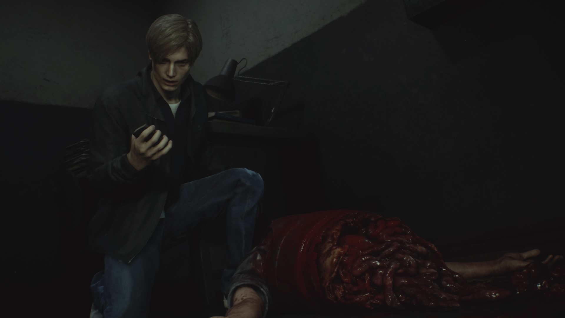 Cały ten koszmar jest nam podany w oprawie, której nie powstydziłyby się nowe produkcje. Gra świateł i cieni, modele postaci, oraz naszych wrogów, no i gwiazda całego spektaklu czyli – komisariat policji. Wszystko to prezentuje się fenomenalnie i pokazuje, że cały projekt był oczkiem w głowie Japończyków. Tym co rzuca się w oczy jest wszechobecny gore. Głowy truposzy wybuchają niczym dorodne arbuzy, a rozczłonkowane ciała prezentują nam wnętrze ludzkiego organizmu na modłę dobrych atlasów anatomicznych. Na sam koniec zostawiłem sprawę związaną z aspektami dźwiękowymi. Wszystkie odgłosy wrogów są wyraziste, przez co przechadzając się po korytarzach komisariatu możemy usłyszeć jęki zombie w poszukiwaniu mięsa. Tutaj wyróżnia się oczywiście Tyrant, którego masywne kroki słychać z daleka, co już samo w sobie pompuje dodatkowe dawki adrenaliny. Cały tytuł zyskuje kiedy ogrywamy go na słuchawkach, bo wtedy możemy jeszcze bardziej wczuć się w klimat produkcji.